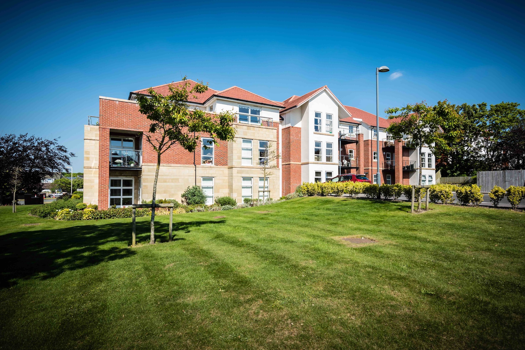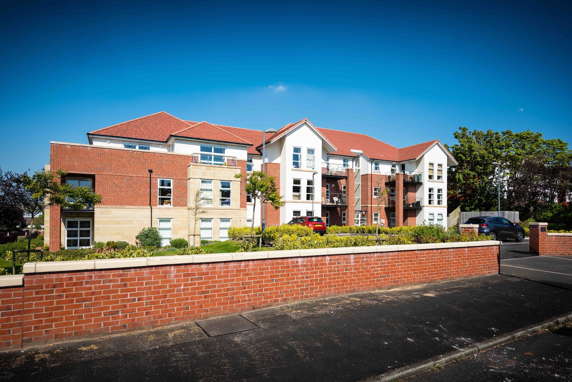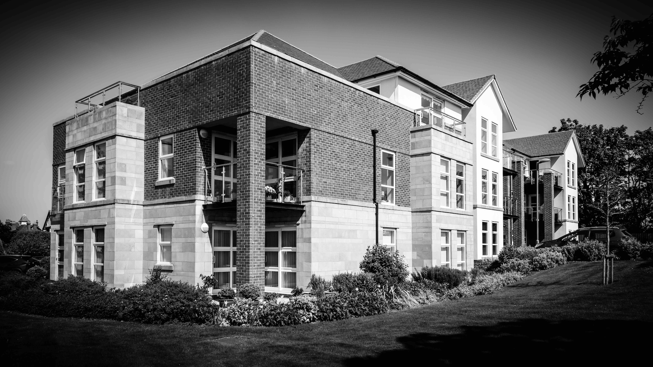 Fairways was a new luxury apartment block of 13 apartments in a prominent location on the corner of Westcliffe Road and Oxford Road, Birkdale. The stone and brick building is designed as an assemblage of elements addressing the two streets and corner to compliment the existing street scene. A basement car park is concealed below a podium courtyard garden, ensuring the provision of a leafy landscaped setting whilst keeping visible parking to a minimum. All the apartments have generous balconies, many with views of the River Mersey. The Penthouse has a large private terrace with expansive views, and a dedicated key accessed lift stop within the apartment.