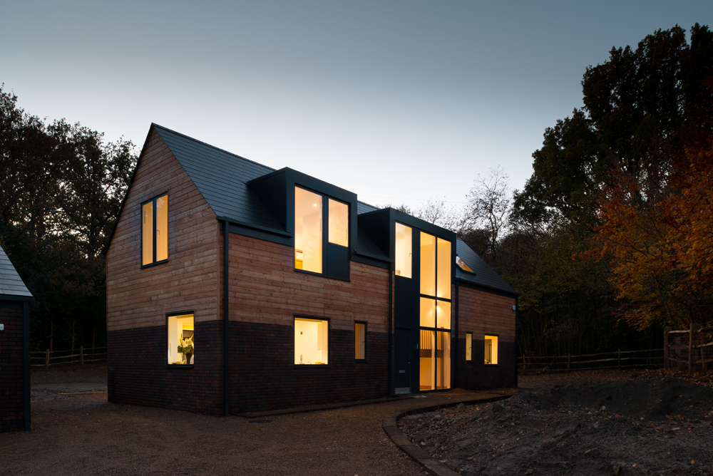 This new build country house near Hawkhurst was required to jump through a number of planning hoops before receiving approval, with the aesthetic of the building resembling the traditional timber and brick houses of the locality. It was important for inside Out that the house didn't become a patiche of the vernacular style, and so the detailing sought to create a contemporary version of the traditional home. Large glazed screens allow light to flood the interior spaces while framing the astounding views of the local woodlands.
