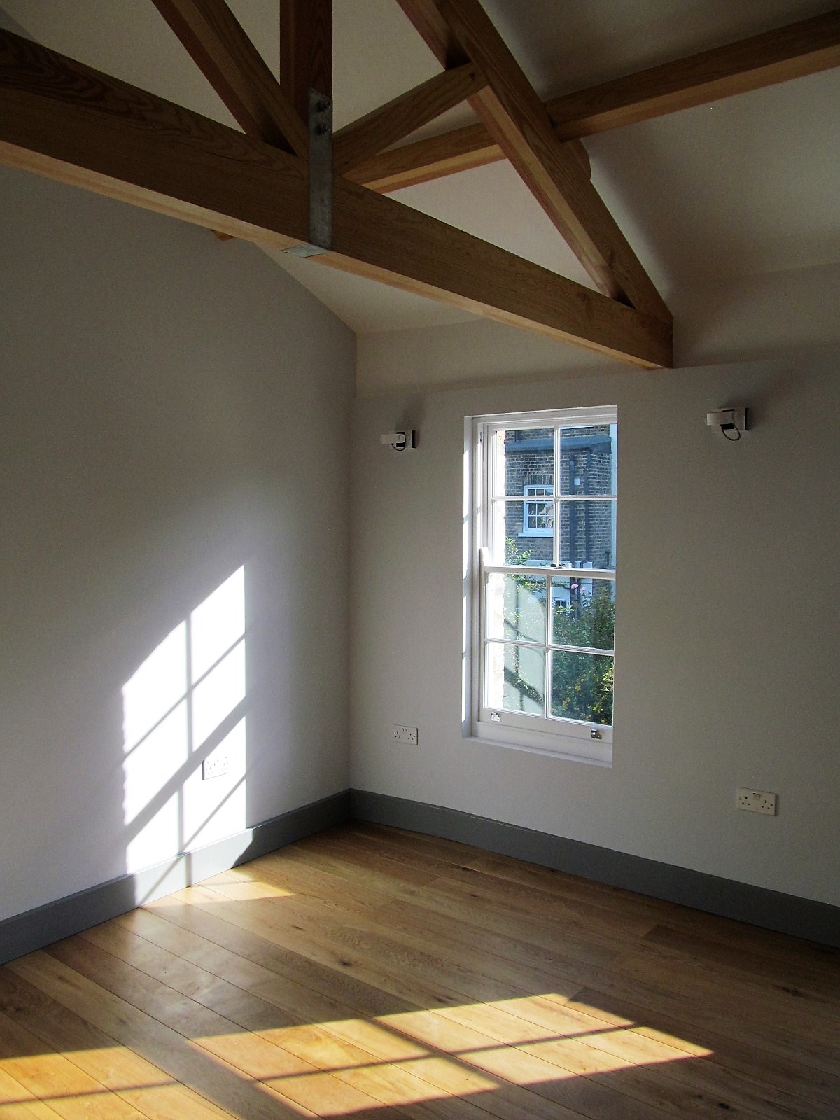 Rebuild of a listed 2 storey Victorian mews coach house in Greenwich. Conversion to home office/studio with kitchenette and separate shower room. Landscaping to garden. Extensive repairs to existing walls and rebuilt walls constructed of second hand London stocks in lime mortar.