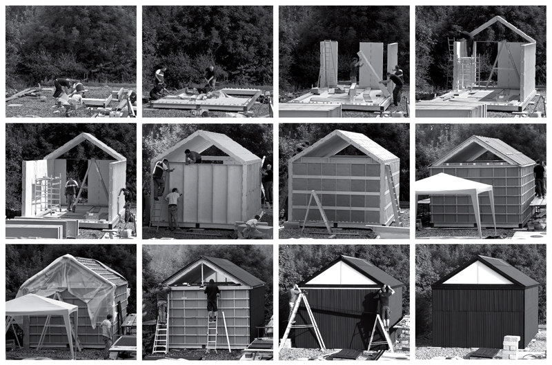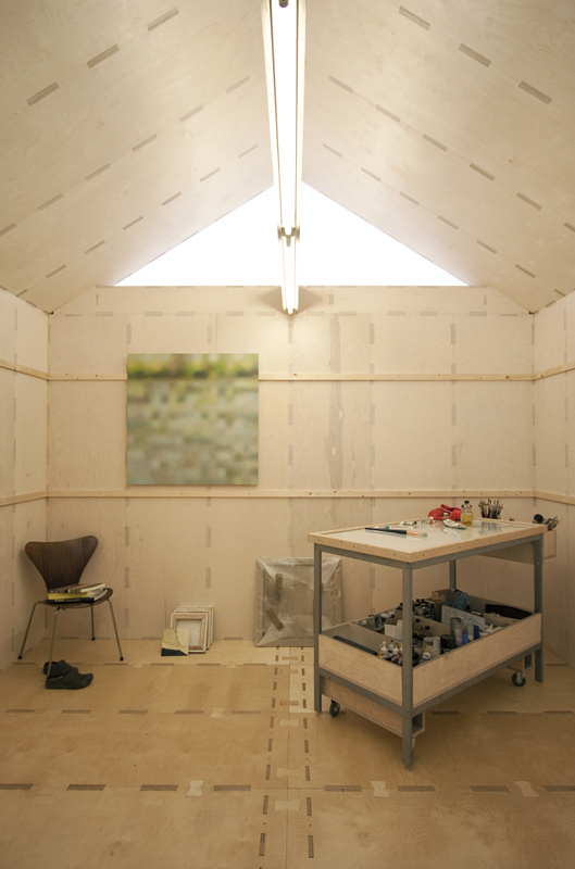 A project to develop a prototype for a self-assembly plywood studio kit for homeworkers and creatives made using CNC fabrication techniques. Easily assembled by two people, it is affordable, thermally efficient and complies with permitted development. Designed from plywood sheet alone, creating simple modular repetitive structural panels for walls, floors and roof, which allow for future extension, alteration or relocation. It requires no additional structural support above ground, and is designed with no structural redundancy; the plywood acting as structure, building envelope and internal finish. Fabricated and assembled during one week by the staff at Rural Office for Architecture.