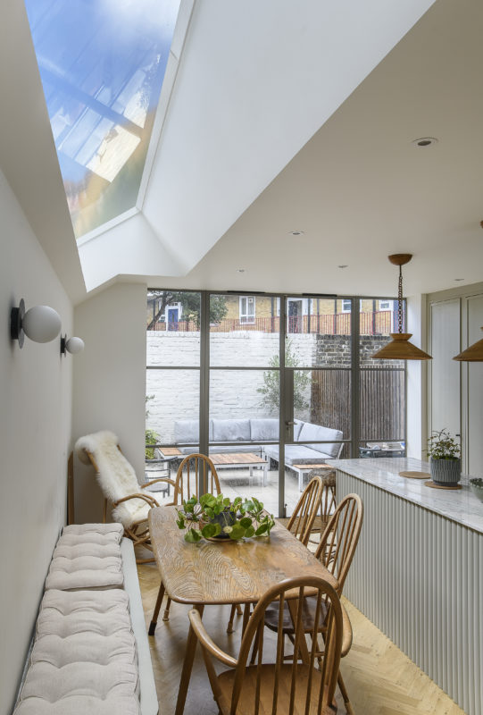 Located in Gastein Road the design sees a glazed extension into the side return and also includes a redesign at all levels to create a contemporary light filled home for our Clients, more suited to their needs and modern living. The success of this Fulham Extension is that it demonstrates once more the positive impact that a relatively small extension can have when well designed, in particular with its use of glass.