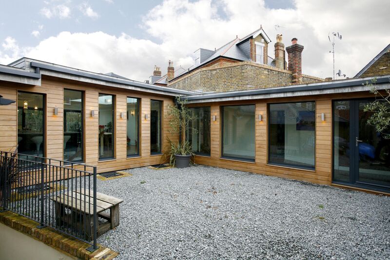 Site history The site was a former Victorian billiard room set into a large walled garden. In the mid sixties when it became a children's nursery with ancillary kitchen. Change of use (in outline only) had been granted in October 2006 for a residential unit. My clients bought the property in May 2007 and were finally granted permission for the current plans in October 2008 The site The site, in Twickenham close to the Thames, comprised a Victorian billiard room, commercial kitchen (formerly a garage), isolated nursery building and a motley collection of glazed and solid extensions binding the nursery room to an old walled garden bounded by minor local roads, and rear gardens. Architecturally, the only building of any merit was the old billiard room. The brief My clients wanted a spacious, light, bright and unique home. Of course, the very fact they had bought a nursery, billiard room and commercial kitchen meant it was hardly going to be run of the mill! They were unsure whether to keep the nursery building and somehow utilise the space, or demolish it and start again. The existing location of the nursery building would necessitate a link with the billiard room if it were to be retained. The old boundary wall, whilst not listed, was certainly of importance in planning/ conservation terms. Parking somewhere within the site was essential for the new family home. Planning and Conservation The site fell on the edge of the Conservation area. An initial check with planning and conservation highlighted a few issues which would create severe limitations for any future development: The wall was sacrosanct, we were not allowed to alter it in any way. The area bounded by the wall had a ridge height restriction for any new or altered building. This effectively meant any new building would be single storey. The site also fell within the flood risk area determined by the Environment Agency, and we would have to undertake a flood risk assessment before we could even think about designing the building. Worryingly, the site also came with a section 106 agreement forbidding any owner to apply for a parking permit within the Borough of Richmond. This combined with the fact we were not permitted to alter any entrances through the boundary wall effectively meant a car free development! Architect's response It became clear early on that the height restriction and limited size of the walled garden meant we could not get close to the size of accommodation demanded in the brief without exceeding a reasonable ratio of building to garden. This was a major obstacle as we felt an essential characteristic of the site was its walled garden and that the ultimate solution demanded a sympathetic approach without overloading the site. The flood risk assessment mysteriously showed the site would become an island in the event of a flood. The flood model showed the river splitting either side of the site and flowing down the railway lines and river. We have conducted tests to ascertain the water table at the site, ensuring that there is no tidal element which might risk making our basement into a boat! Our appraisal of the existing buildings resulted in the conclusion that the only building worth keeping was the billiard room. The nursery building turned out to be a 1990's poorly built brick and tile affair with cheap windows and doors. Several advantages of demolition immediately became apparent: We could reposition the new accommodation away from the boundary wall thereby attaining architectural clarity. We wanted to create an accommodation block as an echo of the old nursery building and link it back to the billiard room. The flood model meant we were able to sink the new building into the site and effectively make a two storey extension without breaking the ridge height limit imposed by planning. We were conscious that the creation of what was effectively a basement level posed a few problems with achieving sufficient daylight to the lower rooms. We designed a sunken garden level as a partial solution to give us the whole of the lower elevation window/ doors, light and natural ventilation. We have also designed a glazed rooflight above a glass floor at the centre of the link and family block introducing light to the basement lobby. The retention of the existing boundary wall with its two pedestrian doors and gate offered us a choice of how to enter the building. The style and handling of the new extension was a key design decision. We chose to follow the lead from the surrounding pitched roof brick buildings and a perceived Frenchness of style. This tied neatly with my clients duality of residing partly in France and England. We had to introduce dormers to the pitched block due to the restricted eaves height. Our preference was for pitched dormers, but the planners preferred flat roofed dormers. We felt that it was important to unite the billiard room and new accommodation block with a contemporary style that would not compete with the two more substantial elements and achieve an interesting juxtaposition of new and old. This also allowed us the planning freedom of a zinc flat roof to provide an entrance into the living heart of the link block and at the same time create a courtyard enclosure around the central gate. We wanted to create the "secret garden" effect of entering the house through the modest front door in the old boundary wall and having subtle glimpses of the courtyard, link block, and main garden beyond. In this way you are able to see from one end of the site to the other from the front door. The entry gently ramps up to the living level before entering the centrally located family kitchen/living area. This also allowed us subordinate access to the guest room (previously the nursery kitchen), with cloakroom and coat storage en route. The family room opens up a panoramic view of the walled garden between the living block and billiard room. This is the contemporary heart of the house which we have treated as