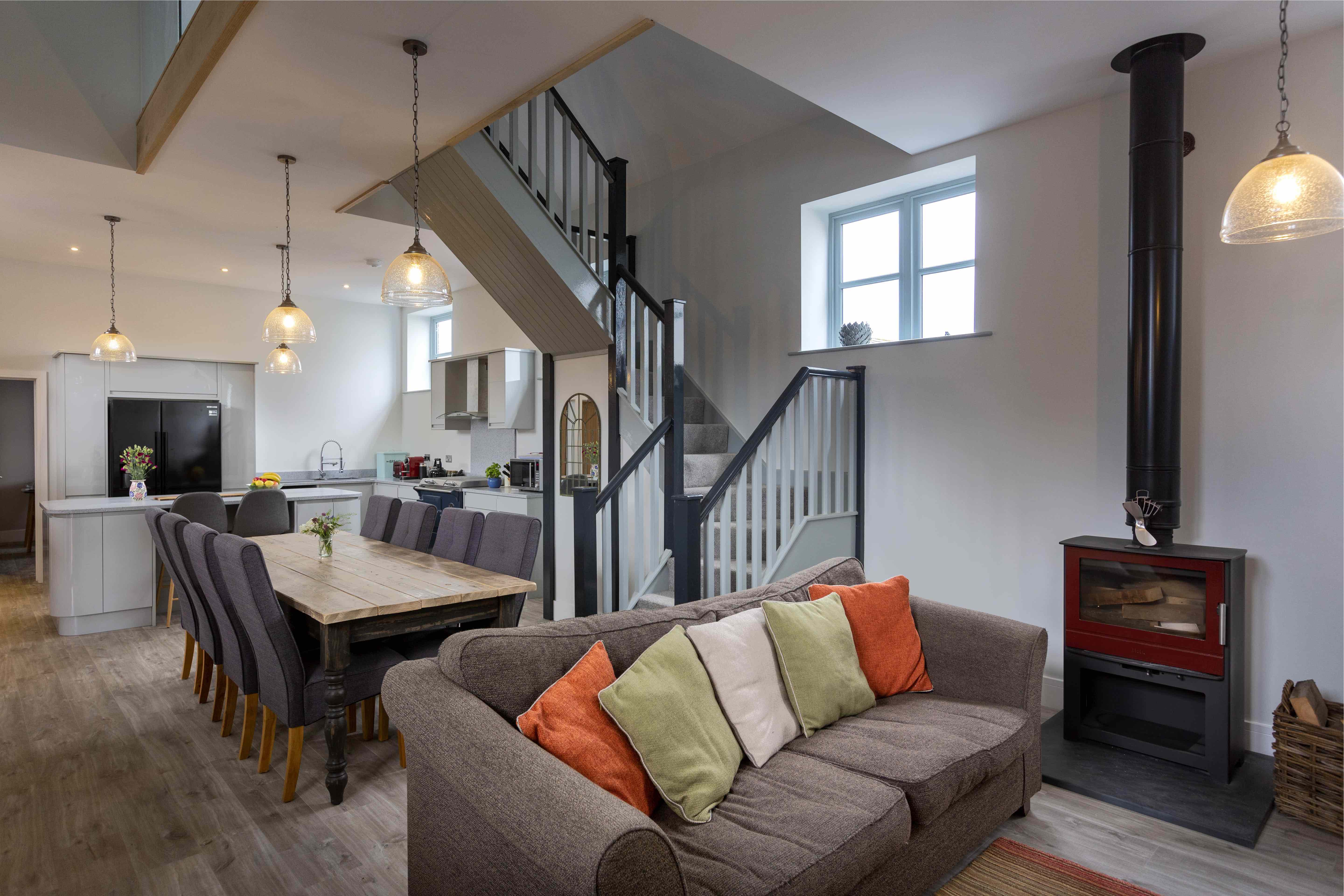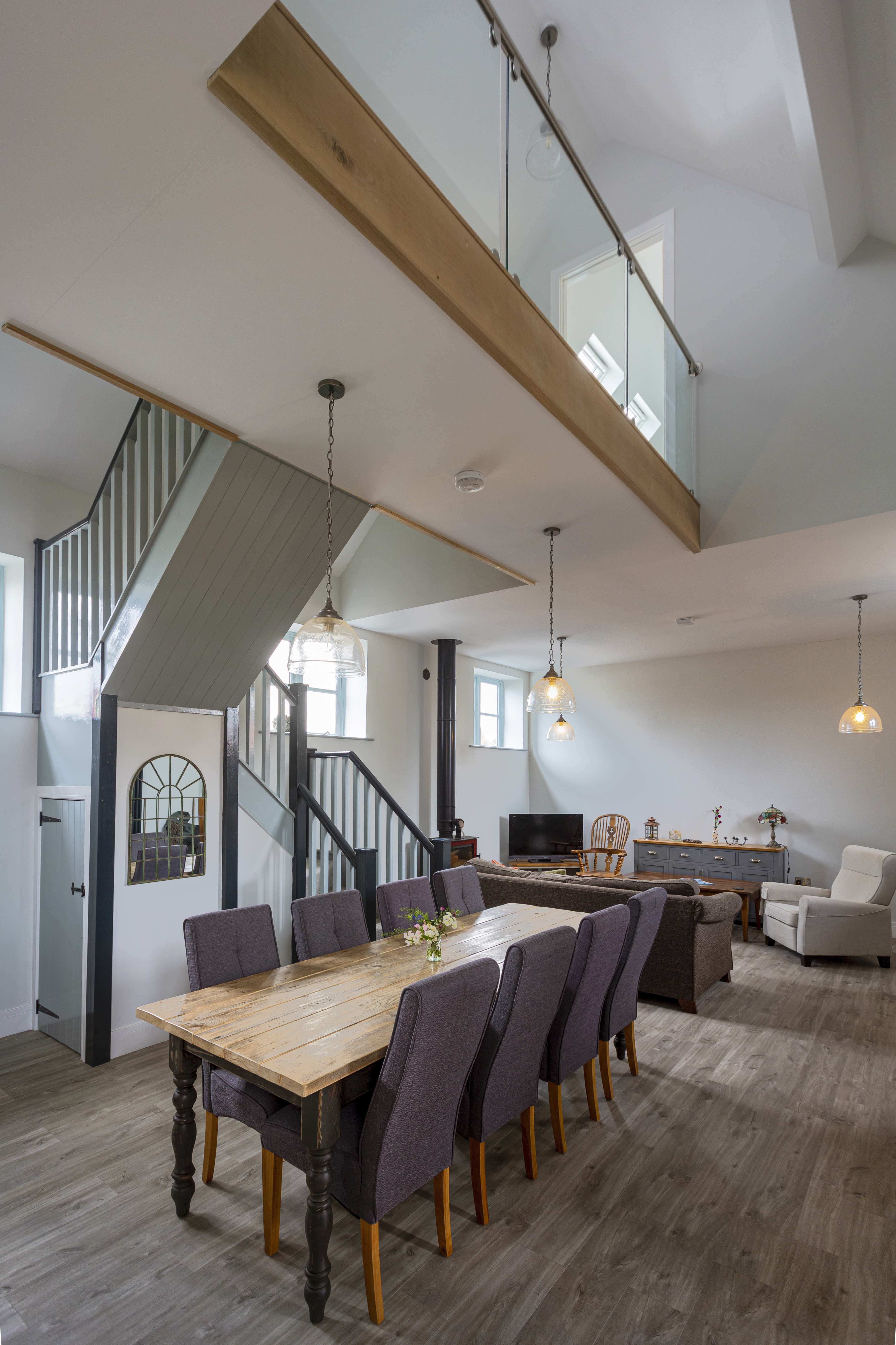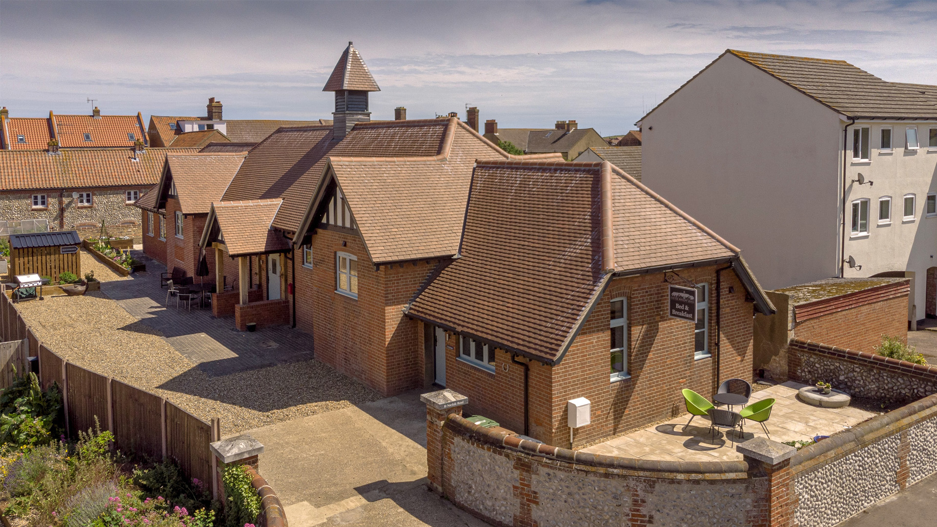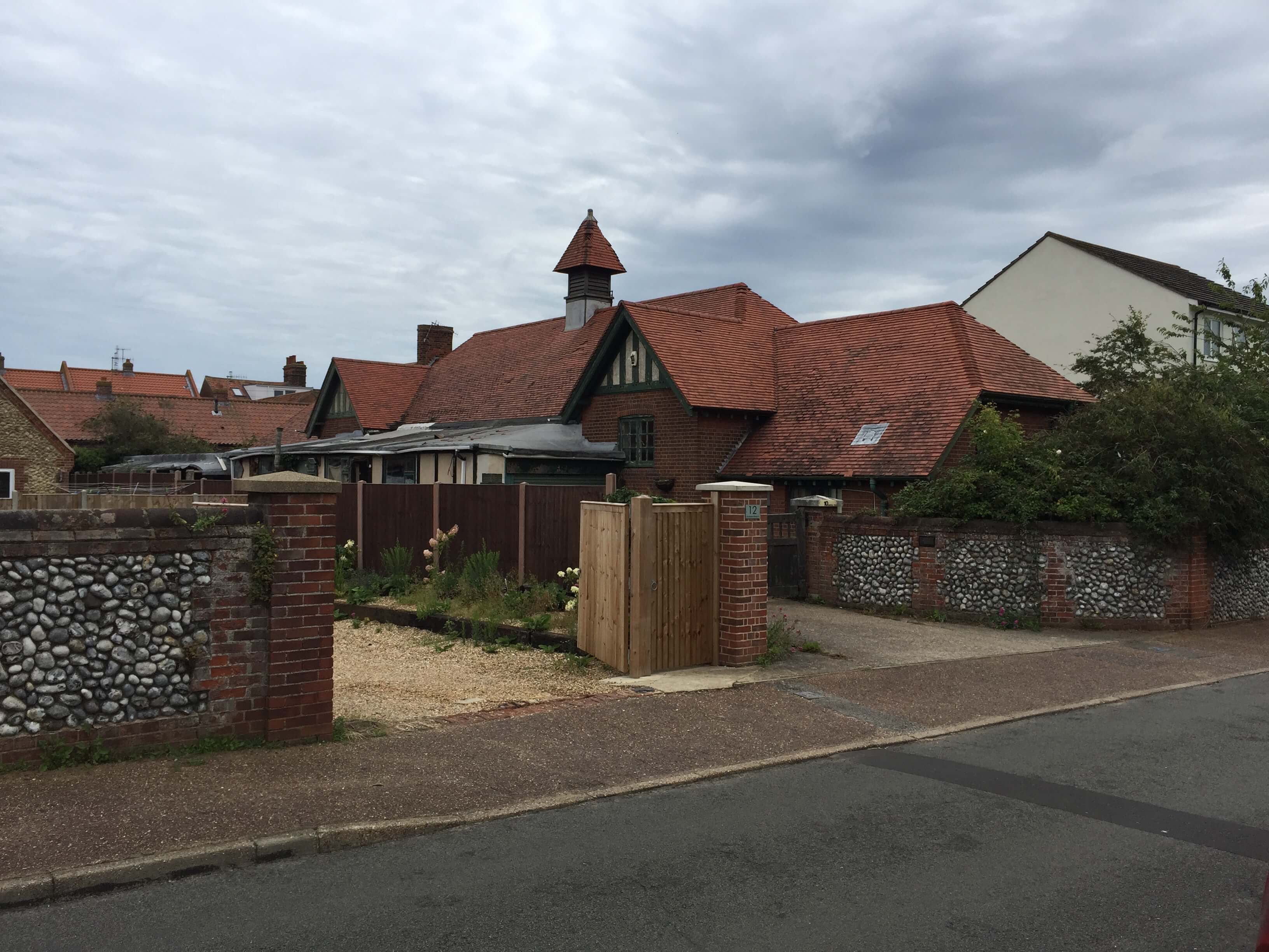 Little Regent Hall, Sheringham Subtly tucked away in the centre of Sheringham, Little Regent Hall began life as a stable block in 1890. Since then it has been used as a community hall/central hub for local events and more recently as a permanent residency for the previous owners. A number of local residents we have spoken to remember visiting the building for community events such as Brownies and town meetings. This history was evident in the raised stage area that still remained in the main room/hall prior to the renovation. The site was left in a poor state of repair with a number of ugly extension attempts, boundary walls left to ruin, and overgrown vegetation all of which detracted from the true character of the siteHuge credit has to go to the current owners whose vision, attention to detail and hands on approach helped sympathetically transform the property into a functional and beautiful family home with bed and breakfast. You enter the property through the only major exterior addition in the shape of an oak framed porch and once inside you are greeted by a cosy yet spacious centrepiece to the property as you step into an open plan communal area with double height ceiling. The unique window height and handmade staircase draw your eye up to the newly added first floor and its exposed link walkway leading to the generous living quarters that house two bedrooms, two bathrooms and a snug area hidden neatly between the eavesExternally, there are a number of thoughtful touches which demonstrate the clients' willingness to go the extra mile to incorporate such as the rebuild of the boundary wall using the original bricks and the installation of a new gate using the original oversized steel hinge. A hand built shed/woodstore was created using the roof trusses that were removed. Stained glass windows were reclaimed. Green tiles were used on the threshold that came from the original chimney surround. Lastly, the discovery of the original Victorian ‘chocolate block’ floor bricks that would have formed the stable enclosures were found to be in remarkable condition given their age and previous use and were included in the development. It is also interesting to note the addition of bat holes in the new ridge tiles that were relined with felt from the original roof as bats are less likely to occupy a space lined with fresh felt.External structural additions were minimal but the removal of the front and rear extensions, cleaning and reworking of exterior brick, a complete re-roof, and a significant amount of groundworks have helped restore the property to its former glory. The transformation efforts were no less strenuous internally with a huge clean-up operation and multiple complex structural alterations to completely rework the layout and allow for the addition of a first floor without affecting the existing roofline. Thankfully, the tasteful fit and finish chosen by the client beautifully completes the look, allowing this building to be enjoyed for many more years to come. And all just in time for their daughter’s wedding which took place the weekend after they moved in!