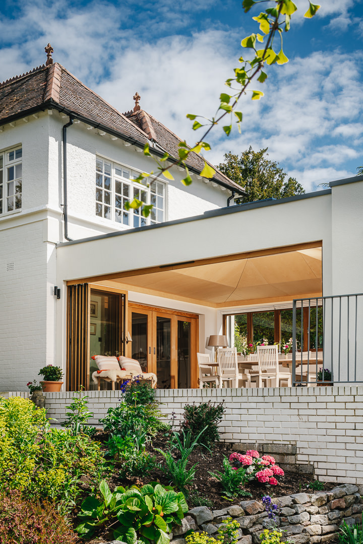 In 2019 we were asked to develop designs for the renovation of a 19th century house in the Sneyd Park Conservation Area in Bristol. Works included the strip-out and modernisation of the interior, a new dining room extension, reconfiguration of the ground floor to create an open plan kitchen and snug, and replanning of first floor to incorporate ensuites and integrated storage. A new, exquisitely crafted bespoke oak stair and screen was installed to the stairwell, improving privacy from the street. Our scope included preparation and management of the planning application process, architectural, interior and landscape design, contract administration and post occupancy evaluation.