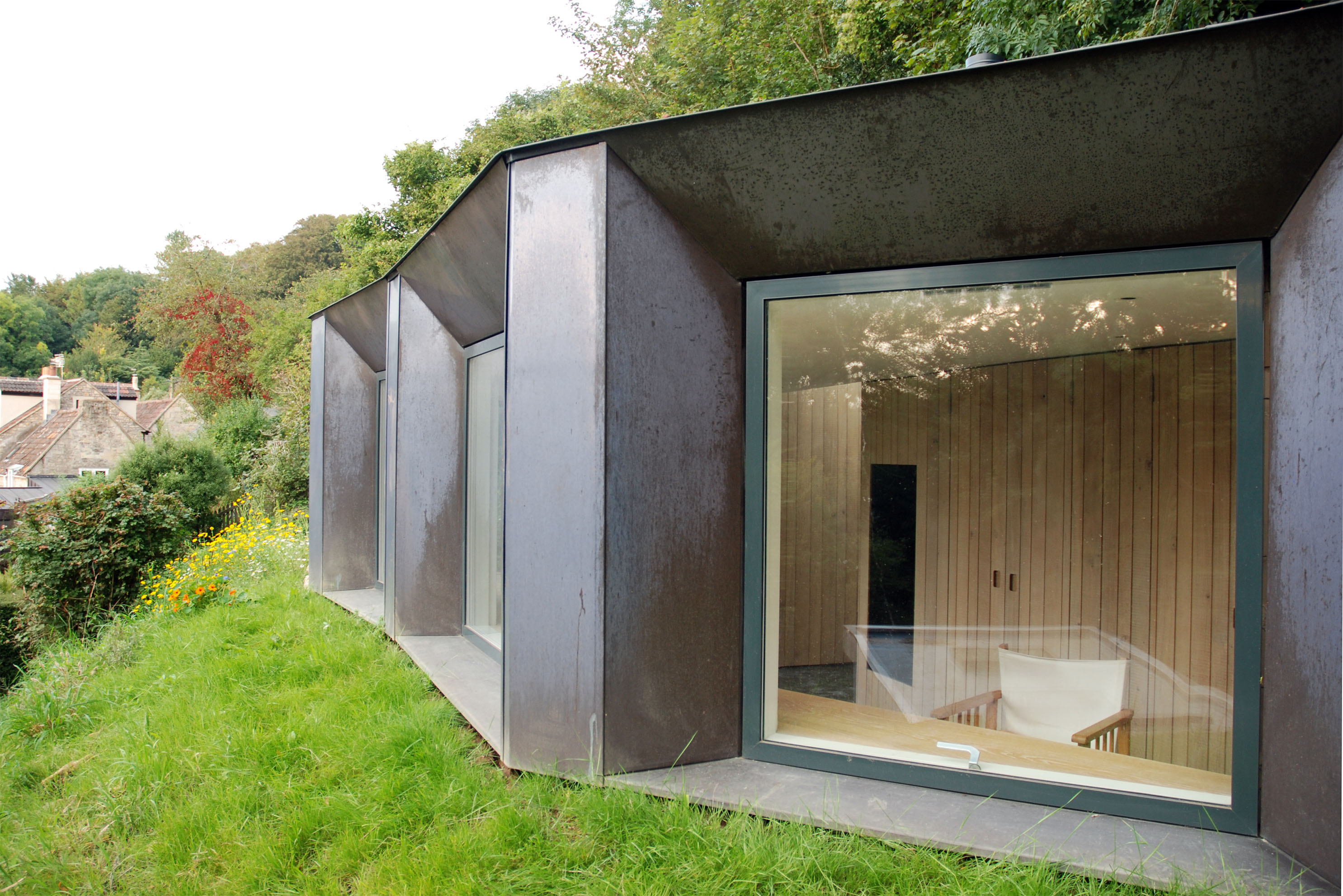 The brief for the Garden Studio was to accommodate a small and discreet space for the residents of Myrtle Cottage. The Garden Studio serves as space to work, to sew, to play guitar, to sleep, or as a hide to observe the woodland wildlife. The key driver to achieving the brief was to create a design which worked seamlessly with the natural forms and levels of the garden, in order that an architecture is created which is less of a building, and more of a landscape. Between architect and client, concepts were discussed such as creating a “ha-ha”, or natural forms of shelter on the site. The intensive planted roof disappears into the flora of its surroundings. The walls become stone garden walls which retain the undulating level changes on the site. Windows are located at key locations, to maximise views. Certain views are framed - to particular trees, or to the American Museum across the valley. The Garden Studio is clad in pre-patinated copper to blend with the natural colours of the landscape. Internally soft, crafted materials line the surfaces, as elements of furniture. An oak lined storage wall incorporates a sofa bed, a wood burner, and cupboards. The project was completed in Spring 2014, and has been accepted by the local deer community, who have been spotted wandering over and around the Garden Studio - a testament to the concept. “The perfect job is one delivered on time, on budget and to specification. If it is possible to go beyond perfect, that is exactly what Stonewood Design have done for us. We have a building that we love to look at and love to occupy. People passing our house regularly ask about it and even take photos. The Stonewood Design team themselves are an absolute pleasure to work with. They are full of ideas but still take great pains to listen to our needs and input. Their attention to detail and the love and care they have taken over our project is something else. We have worked with several other architectural practices over the years, but would recommend Stonewood Design first and foremost every time.” Jane Atkinson and Steve Darling Conkwell Garden Studio January 2014