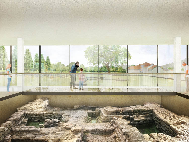 The development of a Museum to showcase Roman ruins and a reconstructed villa, based on the findings on the site, with associated outbuildings.