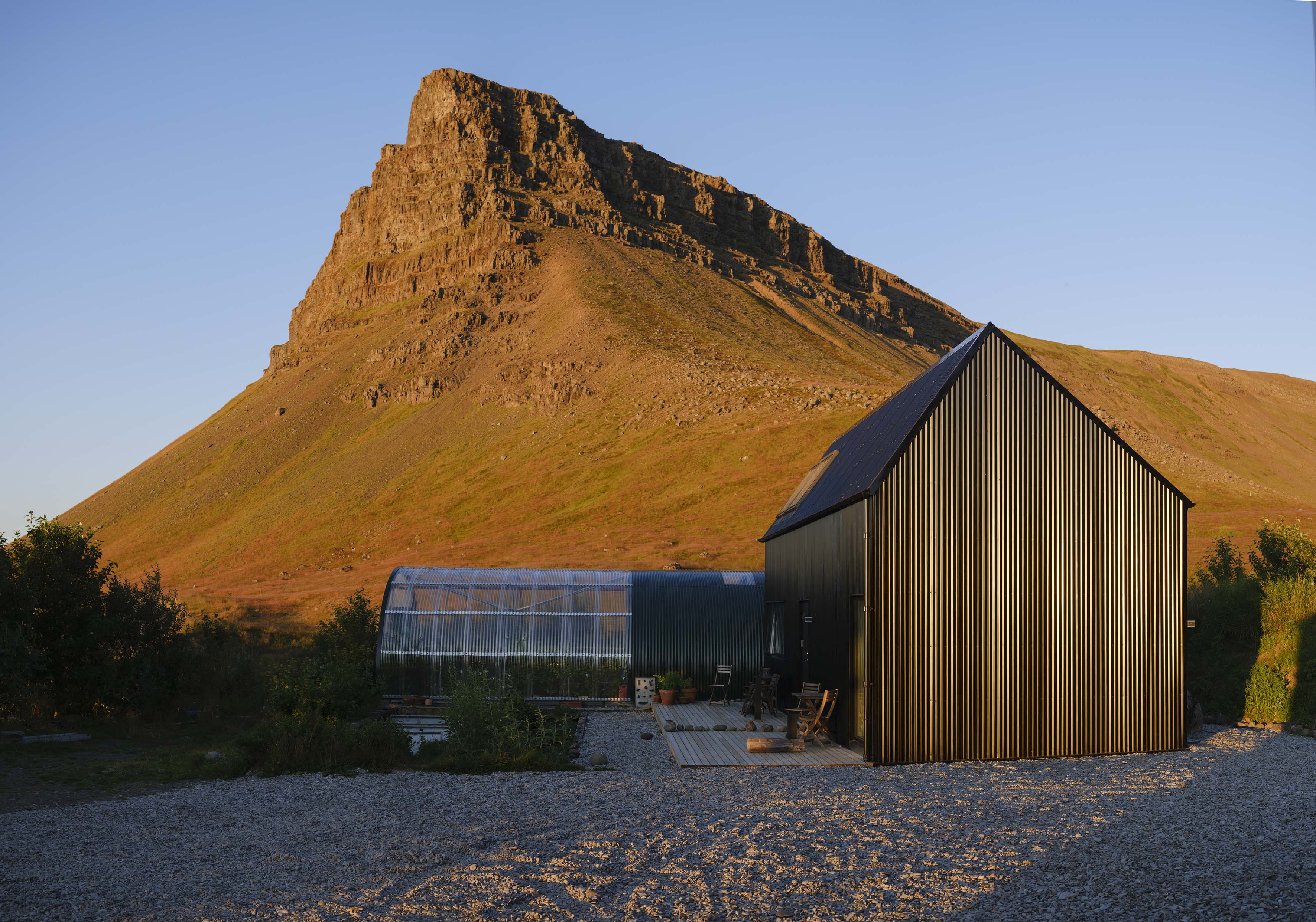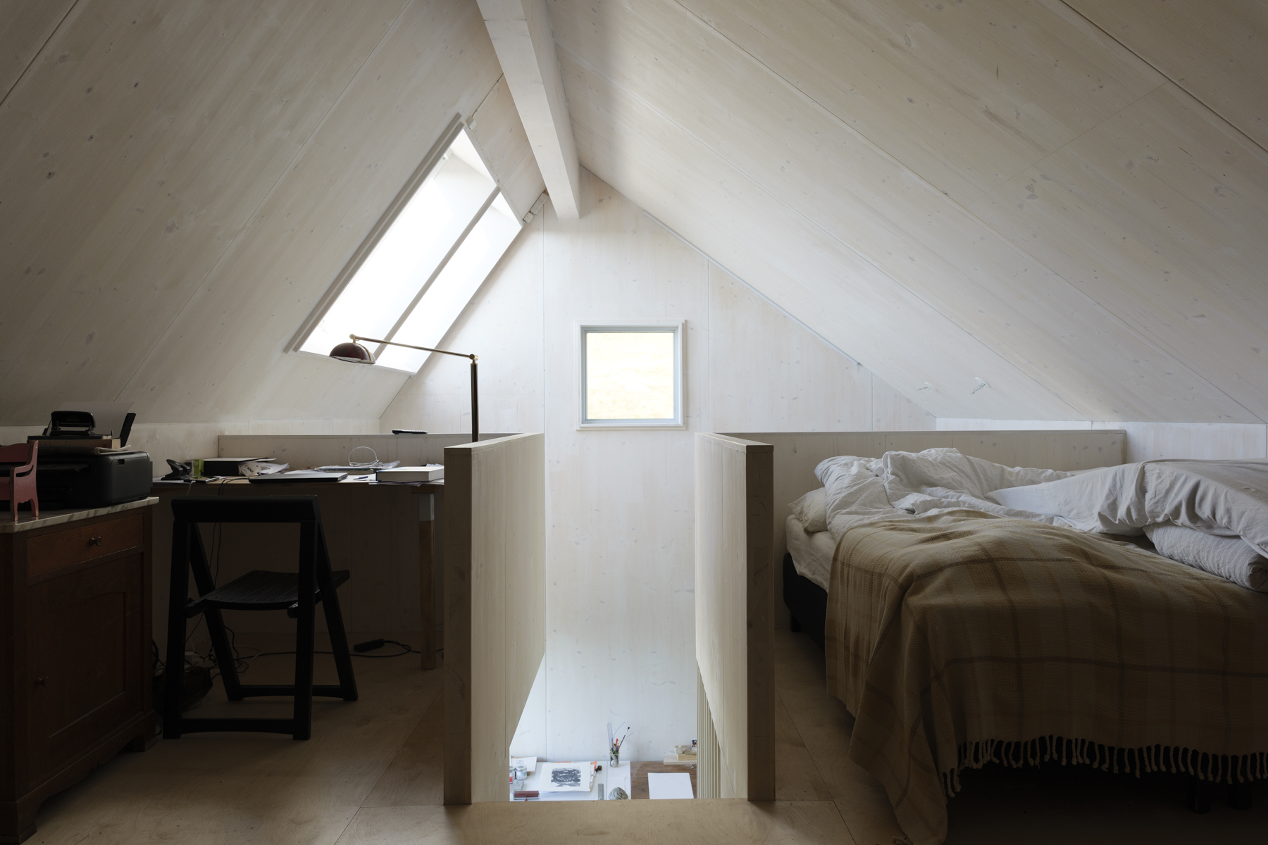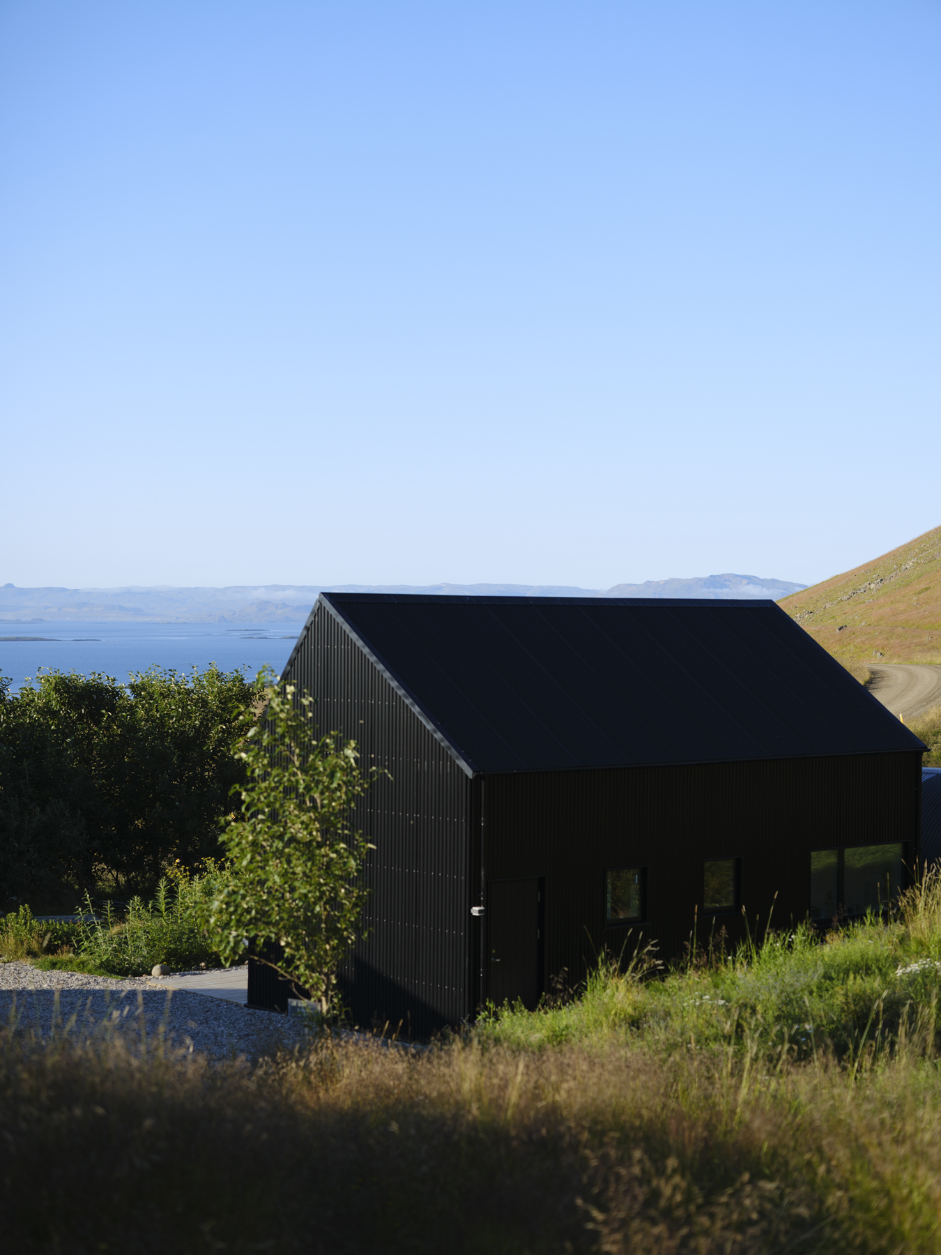 Our design brief entailed creating a space that would serve as an artist's workspace, a holiday home for the owners, and an independent unit available for guest rental. Adjacent to an existing farmhouse, we identified an old concrete foundation that had once supported a sheep shed, now lost to extreme weather. Studio Bua had previously recommended installing a prefab greenhouse and shed on this foundation. In other concrete "rooms," the owners had established a kitchen garden. Opting for sustainability and maximizing existing resources, we repurposed the concrete foundation for this new addition, drawing inspiration from local vernacular architecture and the original farmhouse, where we had previously extended guest rooms and an exhibition space. Given the time constraint to have the rental unit ready for the upcoming tourist season, we chose a CLT (Cross-Laminated Timber) structure with visible CLT for all interiors except bathrooms. While the existing concrete foundation was reused, a new in-situ concrete slab was poured, and the interior floor finish adopted polished concrete to create a robust surface suitable for an artist's workplace.