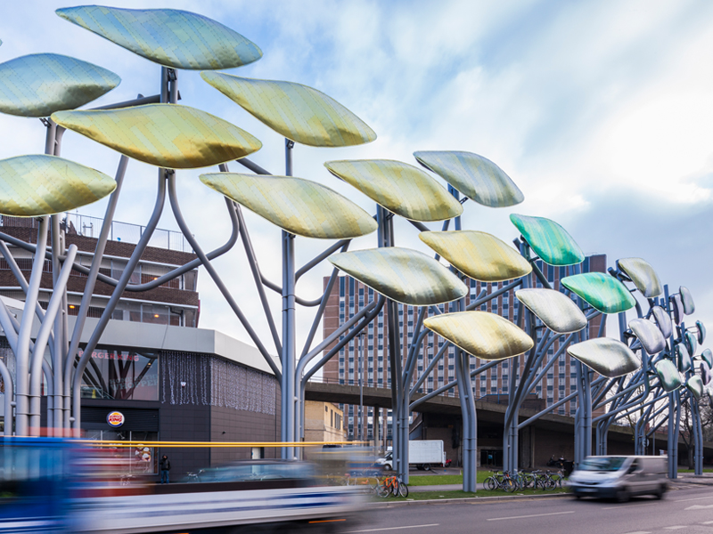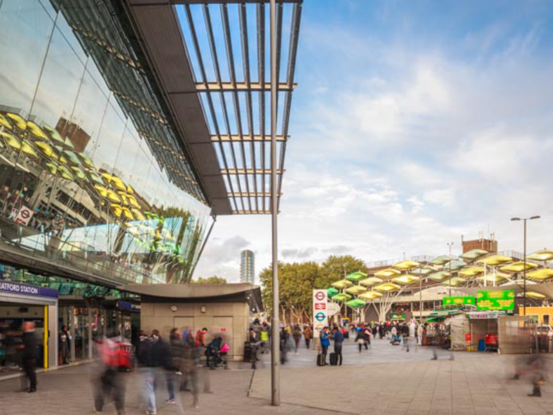 The project, now on site, proposes new public realm designs for a series of key spaces: In August 2009, the London Borough of Newham and Stratford Renaissance Partnership appointed Studio Egret West as lead consultant to design and deliver £13.5 Million worth of high quality public realm that offers a unique visitor experience at the heart of Stratford Town Centre in time for the 2012 Olympic and Paralympic Games. Meridian Square as the gateway to Stratford for visitors arriving via public transport; Theatre Square at the heart of the Cultural Quarter; the Broadway with its historic character; and the Railway Tree crossing that connects with Stratford High Street. In addition, a vertical kinetic sculpture made of naturally coloured titanium, the Shoal, produces a linear edge that consolidates the fractured northern edge of the Stratford Island. The sculpture helps define the island and acts as decoy to the taller parking structures and buildings upon the island. Overall, the re-invigorated public realm together with the Shoal aim to change perceptions and establish Stratford Town Centre as a destination in its own right‚ a benchmark for the quality of future designs that will not be compromised by change ahead.