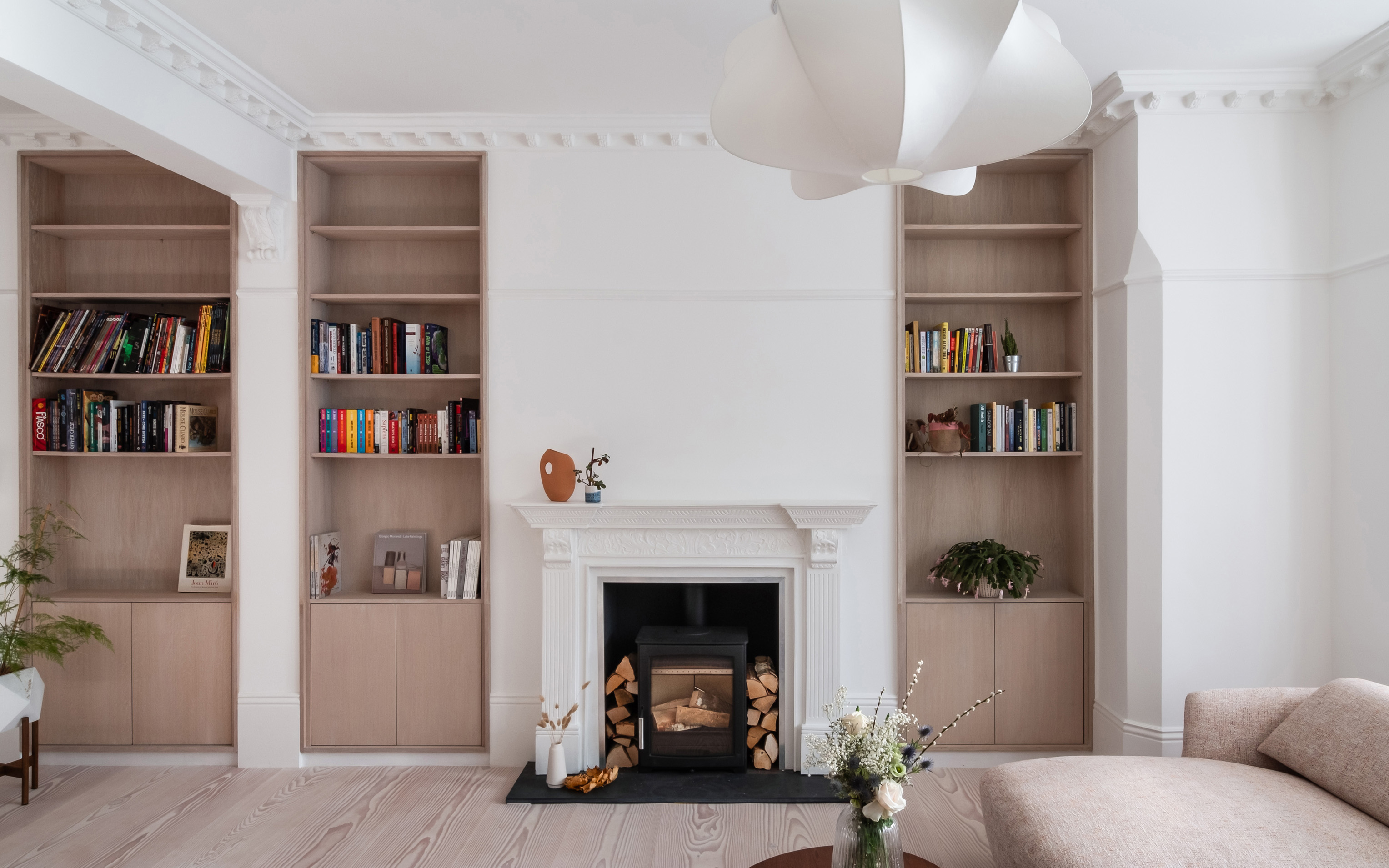 Muswell Hill is a comprehensive refurbishment of a 5-bedroom period home in Muswell Hill, North London. The project focuses on adapting the existing building with new interiors and layout to align with the client’s lifestyle. The ground floor has undergone a transformation, seamlessly connecting the living room, a new library, and the kitchen and dining areas. Integrated bespoke joinery was introduced throughout to maintain a series of spaces that feel uncluttered but still practical. On the upper floors, two existing bedrooms were remodelled into and office and an artist studio, the existing ceilings were opened up to create a cathedral ceiling to advantage of its height resulting in a bright and spacious room with uninterrupted views across Muswell Hill and Alexandra Palace. The aim of the interior design was to create an overall feel of understated elegance whilst still maintaining a comfortable living environemnt. The materials and colours were carefully selected to provide a sense of calmness and warmth but still providing a rich, tactile feel on close inspection.
