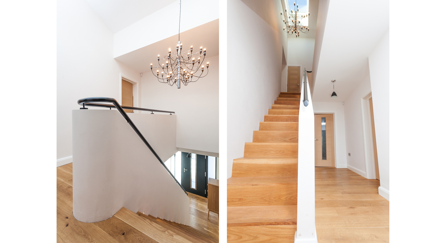 We were thrilled when commissioned to work on this exciting project in north Leeds. The client had recently purchased a run-down 3 bedroom detached property that had not been updated in many years. Working closely with the client to develop various options for the scheme, the final design sees a radical change to the property both externally and internally. A two storey extension has been added to the side and rear, whilst the whole internal layout has been rearranged for modern living. High quality finishes have been used throughout along with several modern design and sustainable features, [including white render, roof lights, bi-fold patio doors and rain water harvesting] This project has been featured in local and national lifestyle publications as an example of high quality modern design