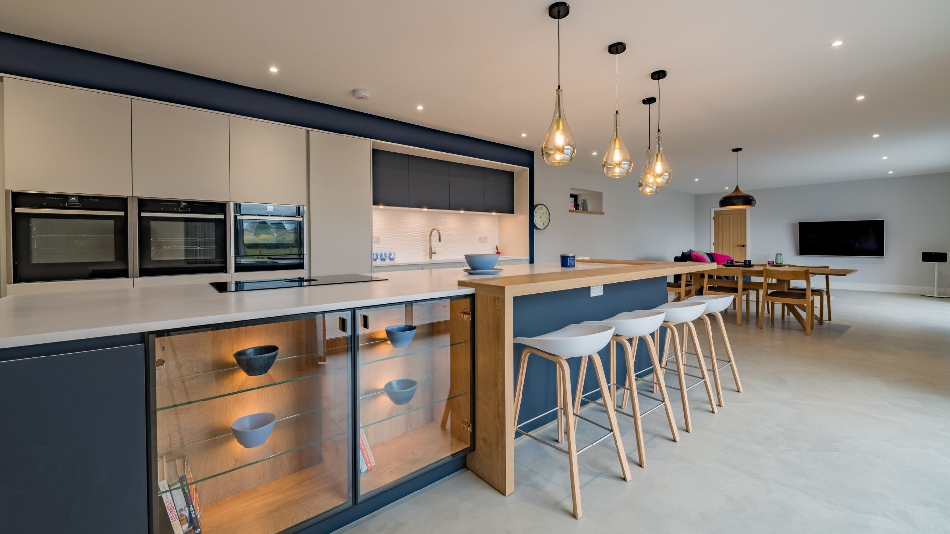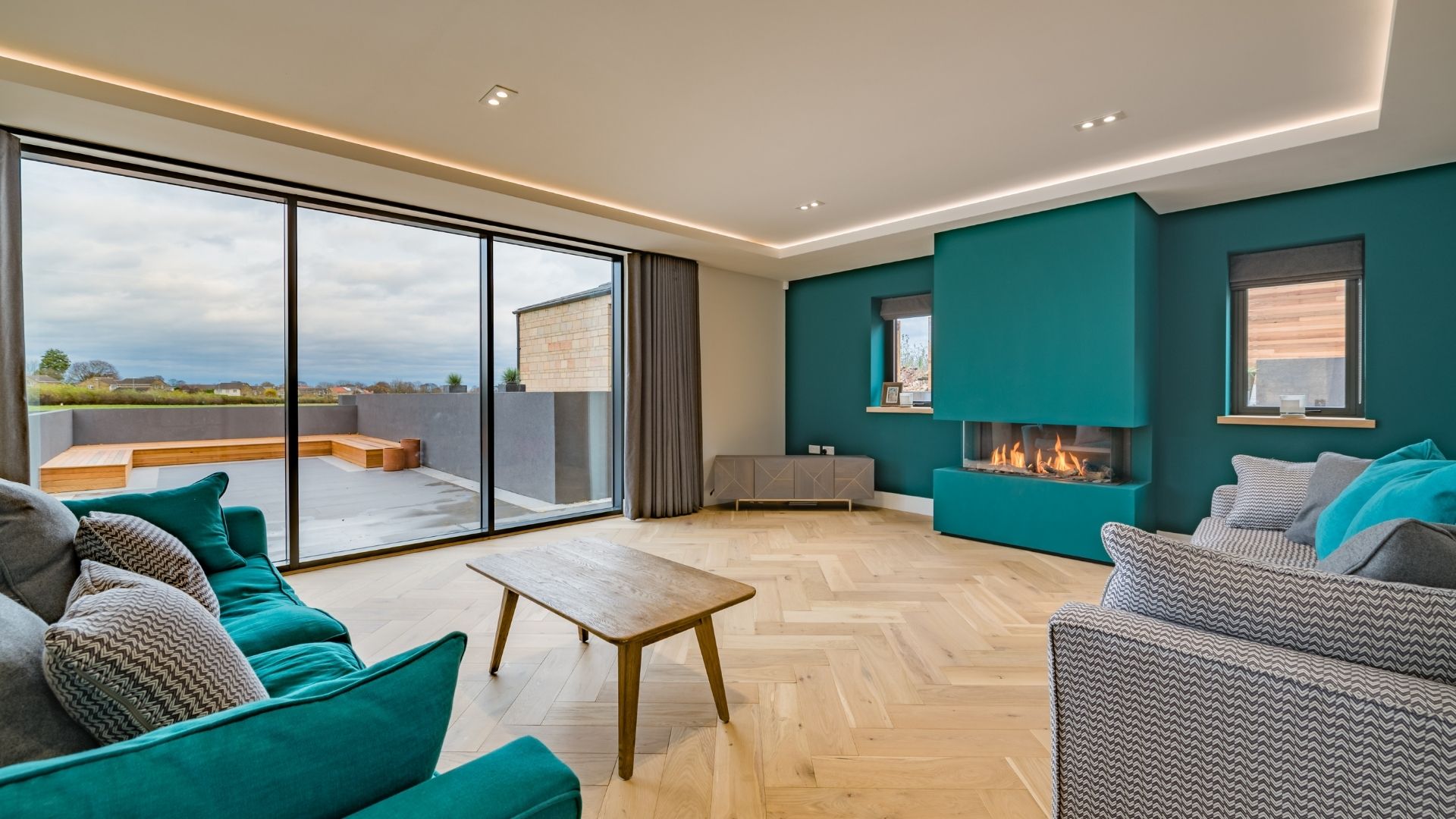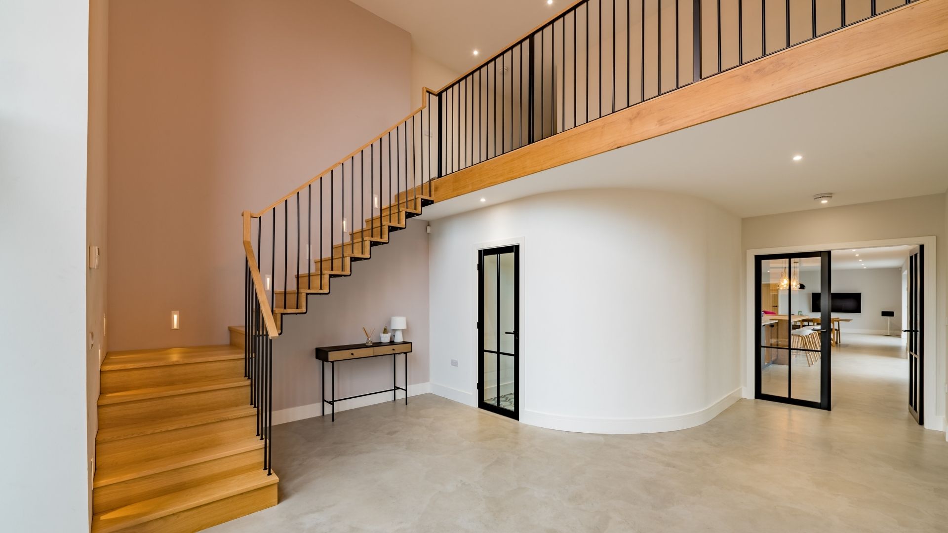 The building was near derelict when we started the design process. Before our client bought the barn, the last residents were cow! The building needed part demolishing to be able to rebuild and convert it safely. Due to the sensitive location and character of the building we had to work hard to satisfy the planners requirements while also giving the client a building with the wow factor they were looking for. The building is entered through a double height glazed entrance into the hallway with polished concrete floor, feature stairs and curved wall leading to the rest of the accommodation. The ground floor accommodation consists of a large kitchen-dining-living room with 2 sets of bi-fold doors giving access to the patio area. There is also a separate living room, with feature fire, that also has bi-fold doors to the patio and garden. Plus cinema room, utility and WC. To the first floor a galleried landing looks over the entrance hall. There are 5 bedrooms, 3 with en-suites and a house bathroom. The master bedroom has feature glazing with views over the fields behind. To the first floor a galleried landing looks over the entrance hall. There are 5 bedrooms, 3 with en-suites and a house bathroom. The master bedroom has feature glazing with views over the fields behind.