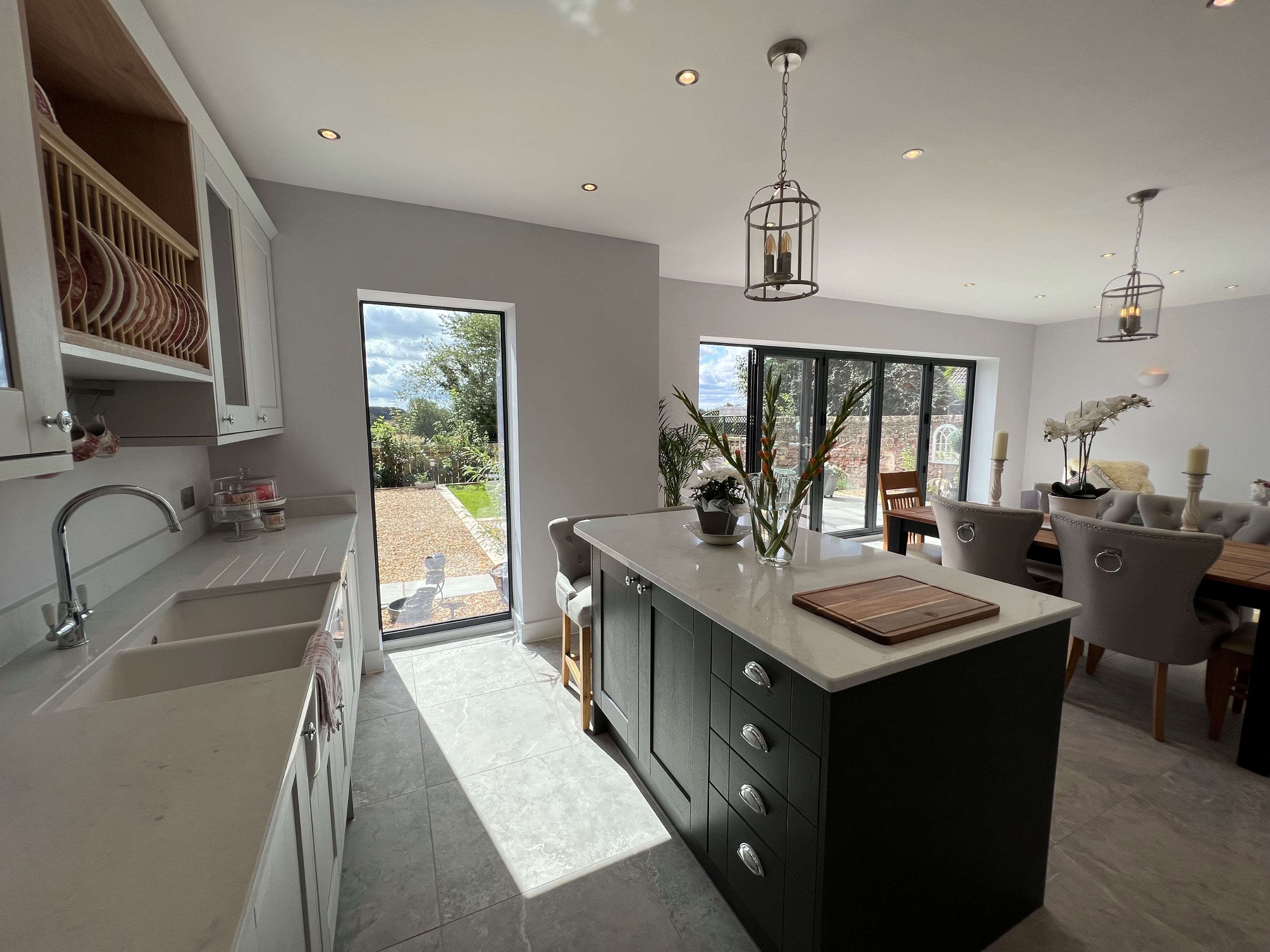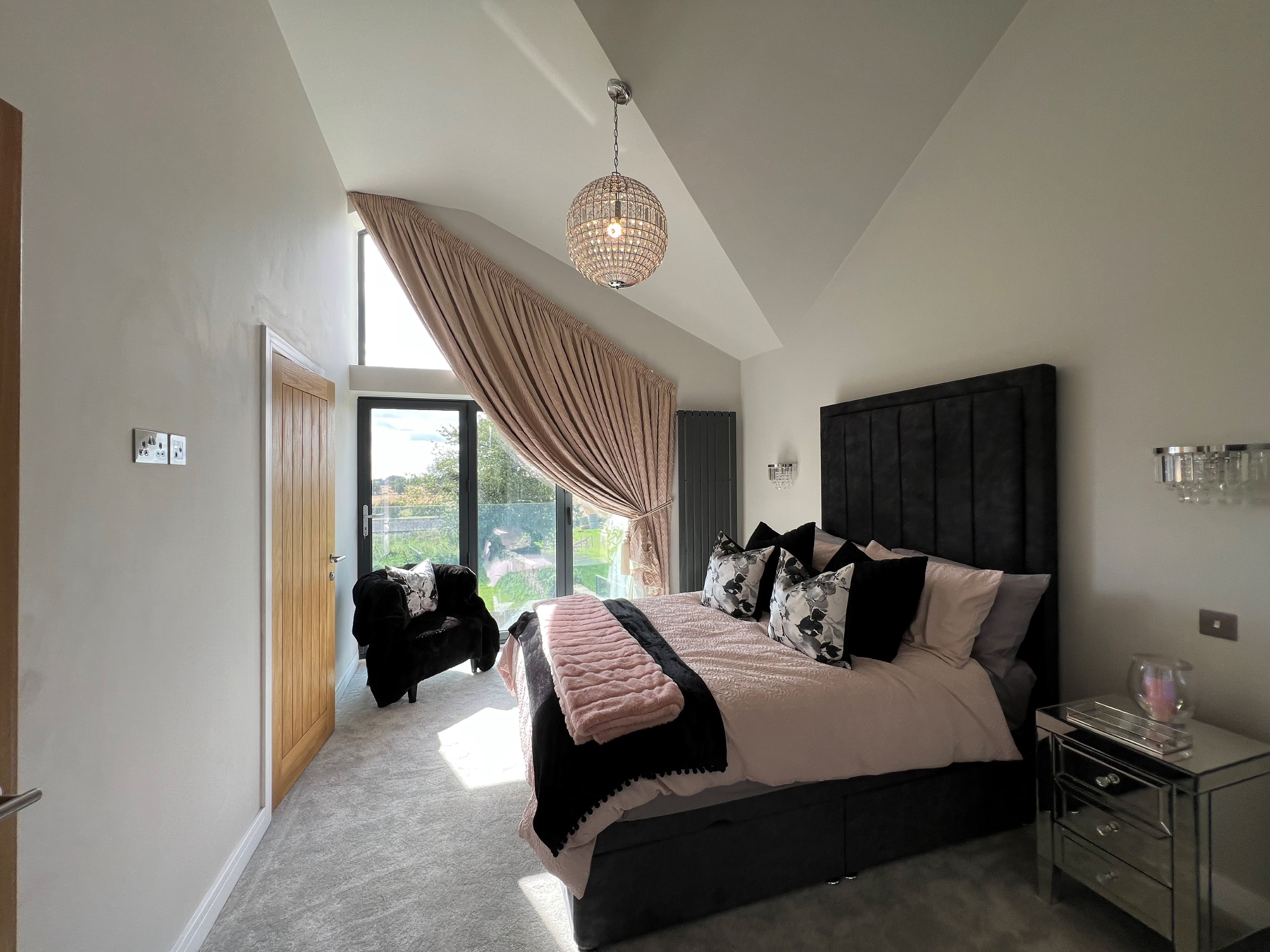 The site was a former garden to the adjacent property and is in a stunning rural location not far from York. With stunning views to the rear but strict planning guidelines for a more traditional style we had to balance the design with new and old architectural design. To the front of the property it was required for the house to sit comfortably with the surrounding properties. The use of brick, along traditional proportions and details, helps the house not seem out of place as you drive down the road past it. The front elevation has symmetrical windows an a traditional timber entrance canopy that frames the front door. However the rear takes advantage of the stunning views with large areas of glazing. 5m wide bi-fold doors open the kitchen-dining-living room to the garden. With even more light flooding in through the full heigh picture window adjacent to the kitchen units. Above the bi-fold doors is feature gable end glazing to the master bedroom and en-suite. Internally the property benefits from 4 bedrooms (3 doubles). The master bedroom has a large en-suite plus walk in wardrobe. A beautiful house bathroom completes the first floor accommodation. To the ground floor there is a kitchen-dining-living room, separate snug, office, utility and WC.