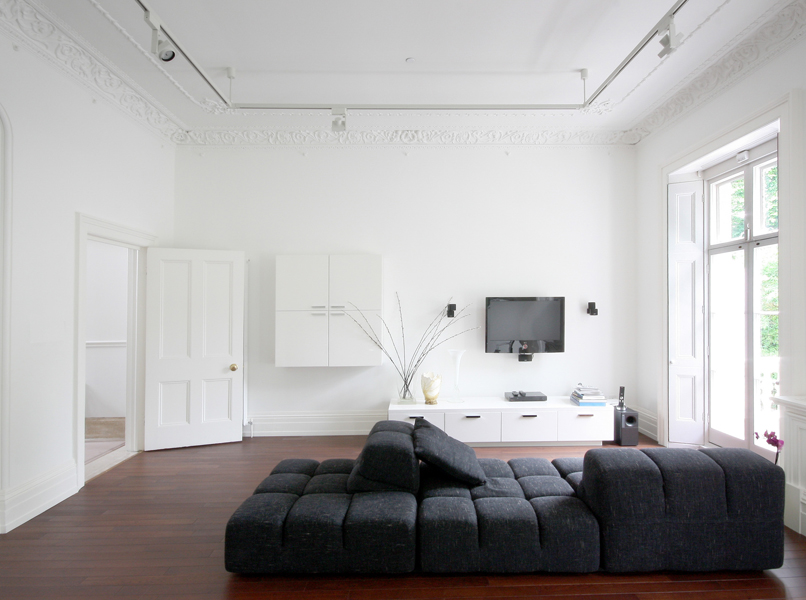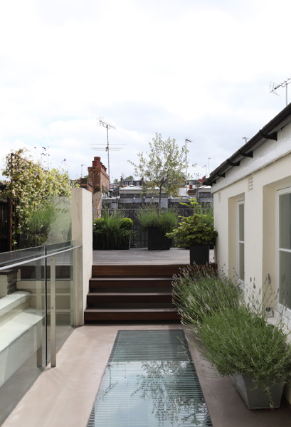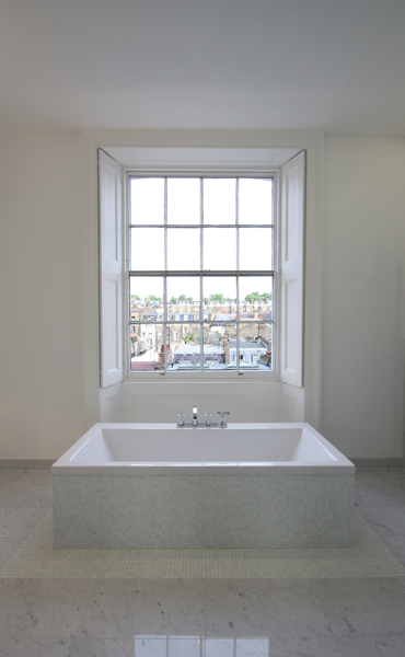 In collaboration with I Nature In renovating this listed, mid-19th century house in the heart of Pimlico, the client wished to preserve the original architectural elements and layout, while adapting the space to suit the needs of modern family life. The ground floor maintained its original use as a formal living area, but the addition of an enclosed winter garden brightened the space by allowing more light to enter through the rear of the house. The first floor houses the dining room/family area and the kitchen. Original French doors at the rear of the kitchen open onto an outdoor glass bridge leading to an elevated terrace situated on top of an existing roof. The glass bridge serves a dual purpose: connecting the kitchen with the terrace and bringing outdoor light to the floors below. The en-suite master bedroom, dressing room and studio are located on the second floor, while the children’s rooms, bathroom and playroom are on the third floor. The top floor includes guest rooms and bathrooms. The basement comprises a separate flat with daylight entering through a centrally located Zen garden.