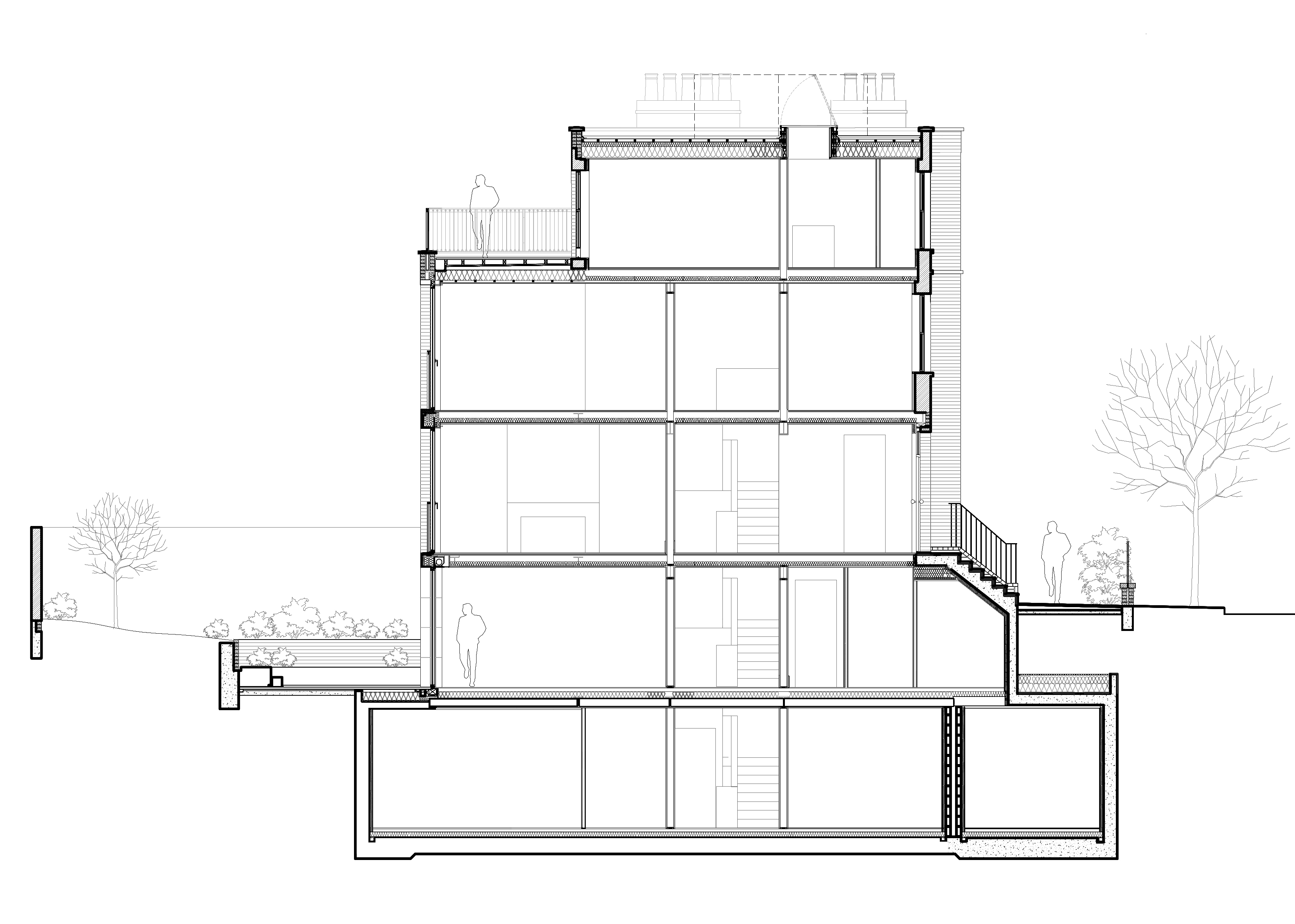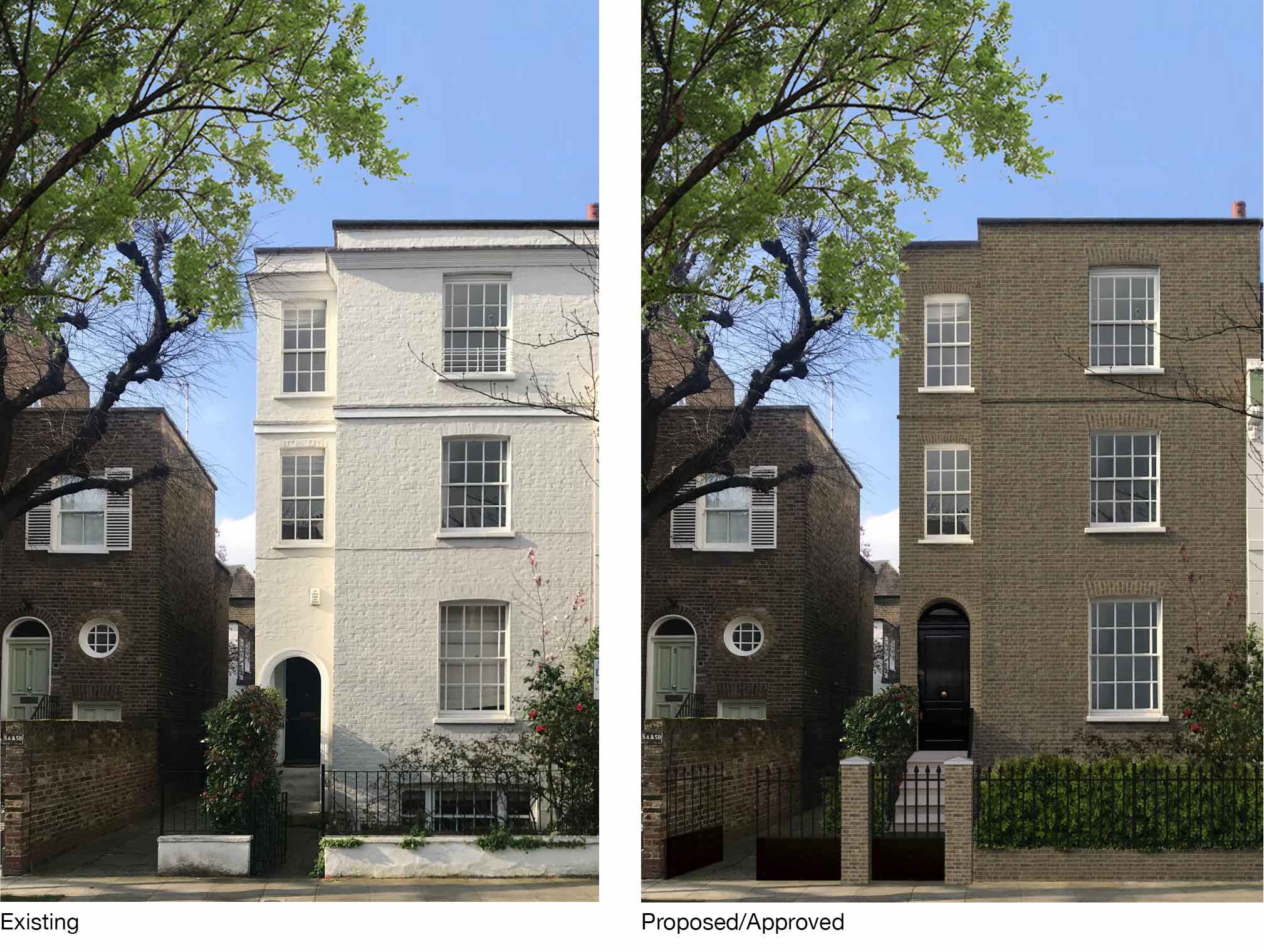Current project stage: 5 (Construction). The project includes: a new three-storey rear extension featuring hand-made special bricks, Portland stone facings and full-height timber thin-framed windows and Juliet balconies; a new full-plot basement; the lowering of the pre-existing basement floor to increase its internal ceiling height; the full internal reconfiguration and renovation of the property, which is a late-Regency, four-storey townhouse in the Queensgate Conservation Area, on the boundary between South Kensington and Chelsea. The project is currently at construction stage: the demolition and excavating works started in February 2025 and Practical Completion (including the Fit-out works and bespoke interiors) is due on December 2026.