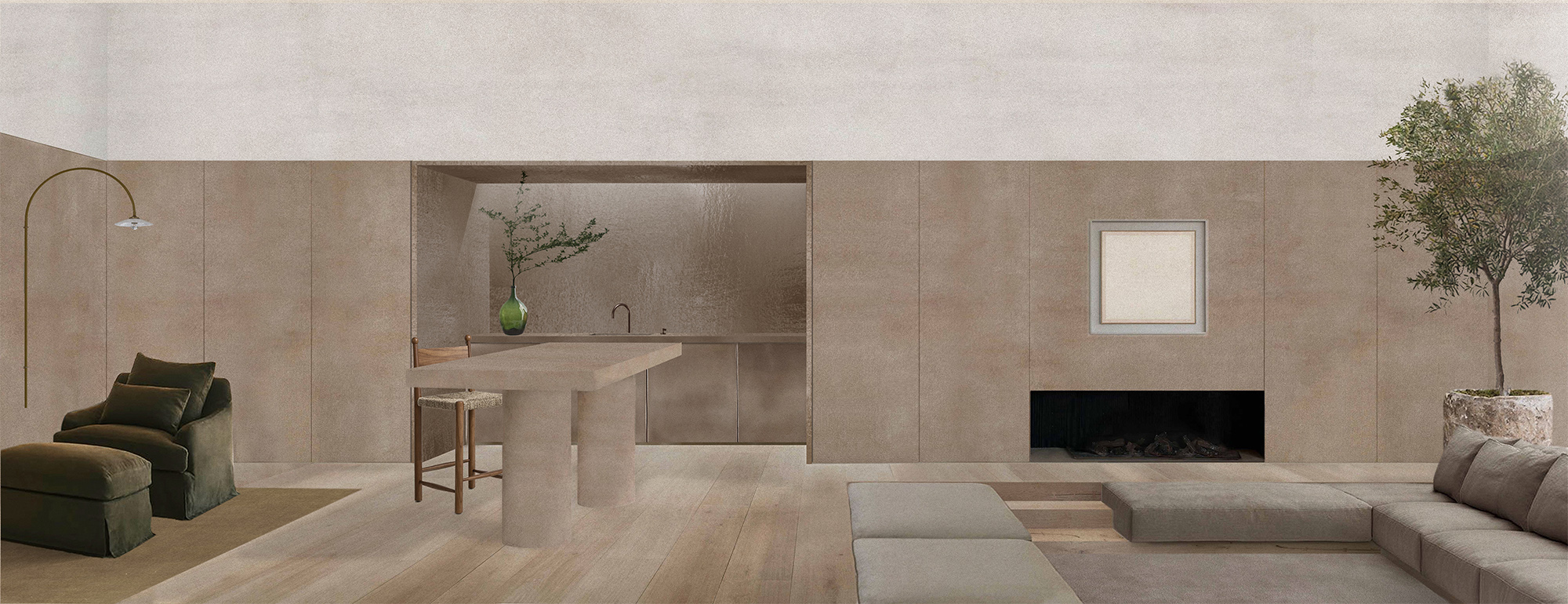 Located in an Area of Outstanding Natural Beauty of the Surrey Hills, the 8-acre site features private lakes, hills, a recently renovated swimming pool and two outbuildings, one used as a pool house and the other as a utility area/garage. Our project involves the renovation of the pool house and the conversion of the garage into a guest house with a private gym. To achieve this, we will replace the existing roof of the garage with a new roof that would allow for the construction of a mezzanine. In both buildings, excavating works will enhance the quality of the interiors by providing more generous internal heights, as well as a more articulated layout featuring raised and sunken living areas. Strategically placed windows, a new bespoke bar made of exquisite materials and carefully chosen finishes will enhance the experience of inhabiting this country home throughout the year.