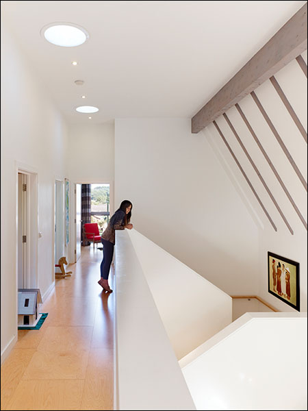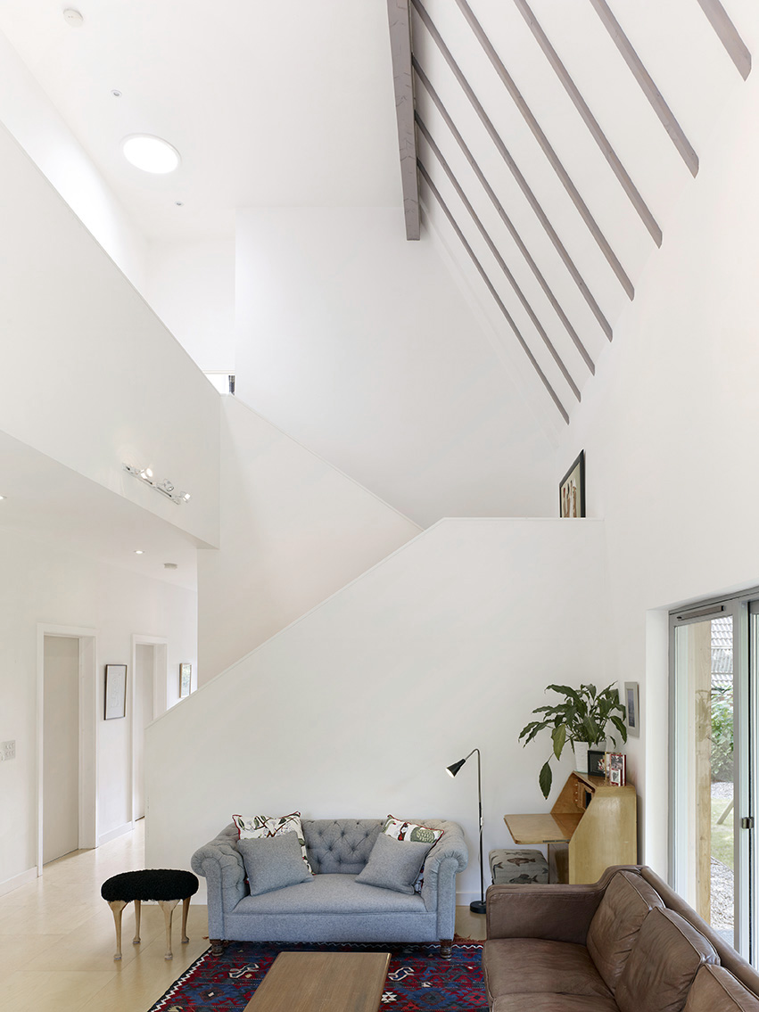 This project is intended as a prototype for a low-cost, low-energy, new-build house which can sensitively respond to a market town setting. The project site had a planning restriction for a chalet bungalow and we responded to this by ‘splitting’ the central ridge to provide more spacious rooms on the first floor. We used a ‘fabric first’ approach to the building design, working with Buro Happold on the massing, orientation and glazing distribution to maximise passive solar gain in winter months. By arranging all of the cellular rooms into one half of the building we created a dramatic double height living area, with solar tubes bringing light deep into the heart of the building. The construction of the building was featured on Channels 4’s Grand Designs and described as ‘a template for the ideal modern family home’ by Kevin McCloud. Since completing the project we have started working with a number of developers on larger residential schemes using many of the same design strategies to balance the need for sustainable development with economic reality.