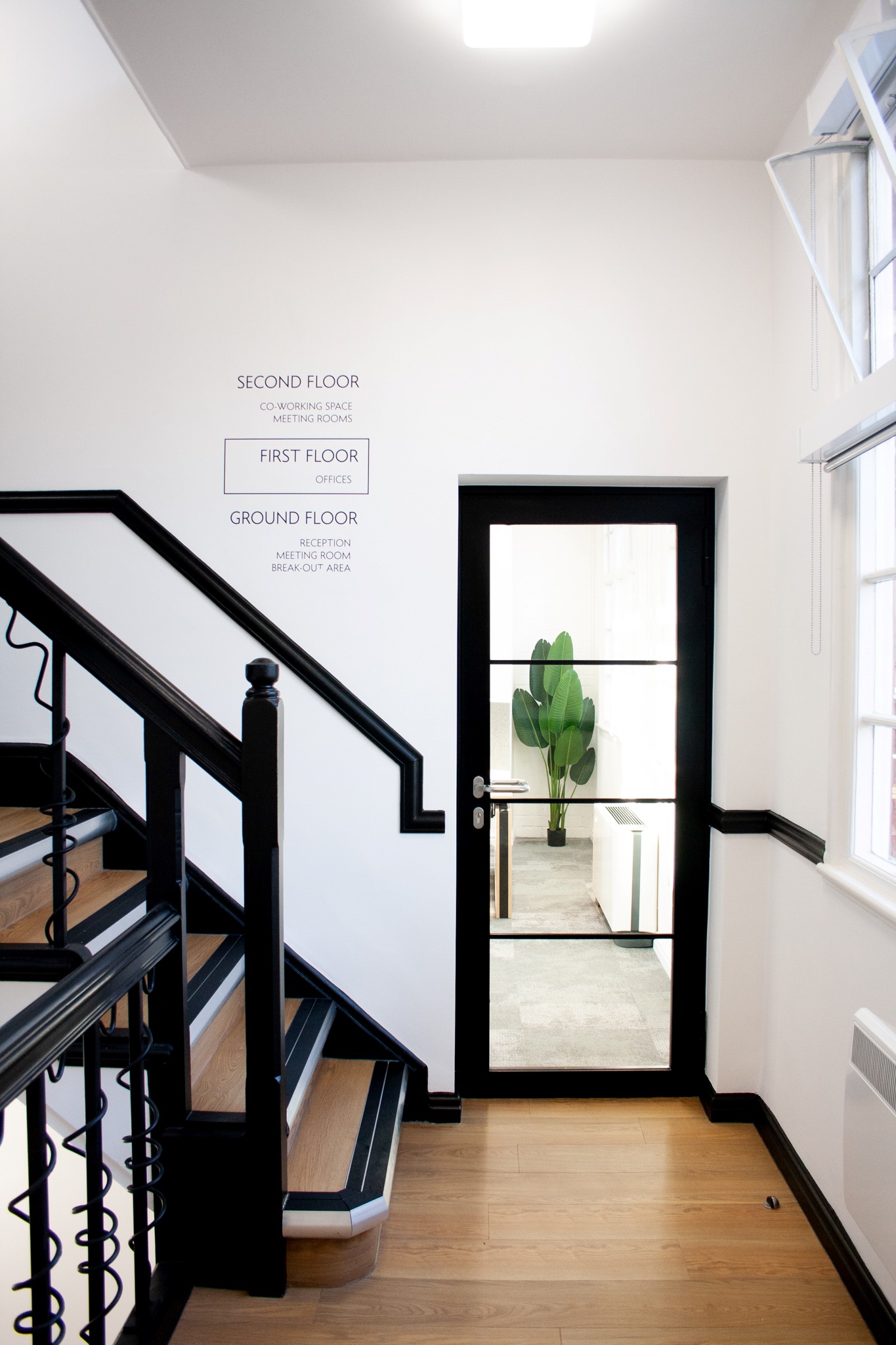 The refurbishment of an office building in Birmingham's Jewellery Quarter.? The aim was to completely transform the workplace, which covers 4 floors including a basement of a Grade II listed building and requires both external and internal improvements. The design is based on modern industrialism to reflect the former character of the building. The new layout intends to enable the client to improve its work environment by facilitating co-working, improving break-out areas for employees and improving communication between the different departments. There was also a design focus on way finding points, wall quotes, and interior finishing touches such as plants and interior decor.