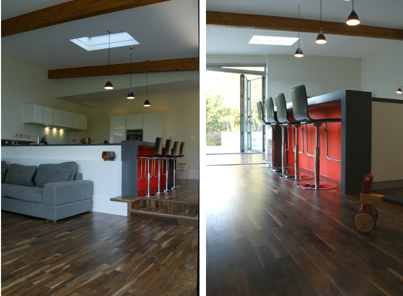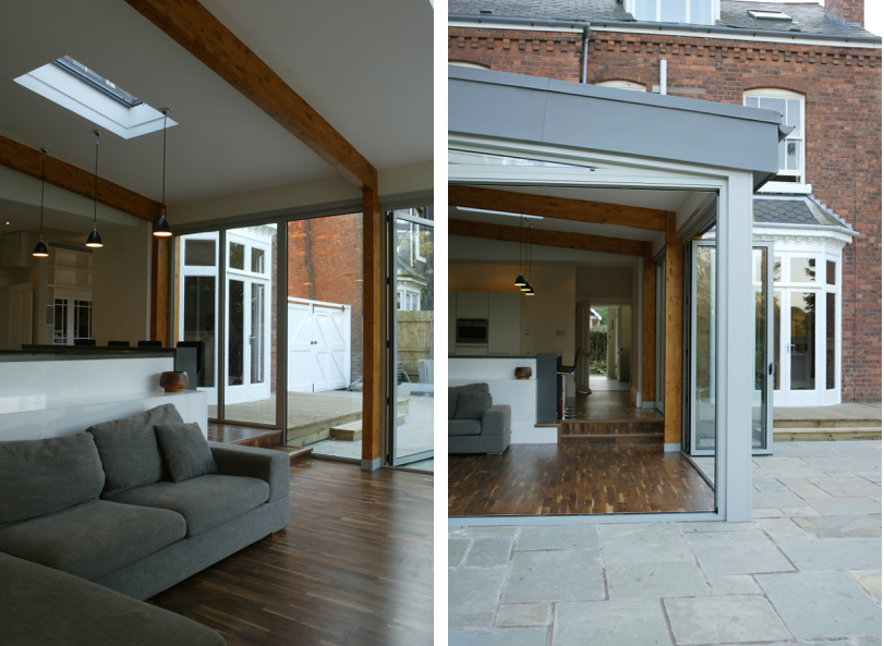 This contemporary extension provides a family space with strong links to the rear garden whilst juxtaposing the Victorian architecture of the house. The extension replaced an uninspiring 1960s brick extension which the clients referred to as "a crime scene"! It is designed to blur the boundaries between the interior spaces of the house and itself, and between the inside and the outside. Folding / sliding doors open up to connect to the external space which is defined by a angled perimeter wall. Timber glulam frames form the principal structure providing a contemporary aesthetic with some resonance to the existing building. The design was featured in "25 Most Beautiful Homes in the World" 2008 edition. Client Testimonial: "Having found our new home, we knew that we needed some visionary help. From the point of deciding on a design to the completion of the build, Kevin and the space* studio team where there to facilitate the smooth, seamless running of all the processes involved, taking the hassle and aggravation away that comes with such processes. They were there from conception to completion, giving guidance, support and expertise. I would without hesitation use the space* studio."