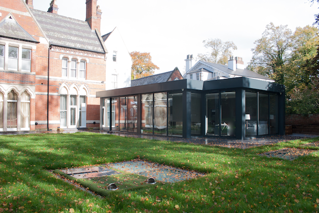 This award winning project involved the formation of a large contemporary extension at the rear of an 8 bedroom Victorian Grade II listed building, as well as the construction of a new basement which is linked to the main house via the extension. The vision was to create a contemporary space which contrasts the existing architecture of the house. Natural light floods the space and a glass walkway links the main house and the extension, where a Japanese zen garden can be seen. Views of the garden also surround the extension, bringing the outdoor elements inside. The new basement consists of further living accommodation, a cinema room, sauna and gym area, and large laundry room. Roof lights provide natural light into the basement. Winner of the 'Best Extension or Alteration to an Existing Home' at the LABC 20219 Awards