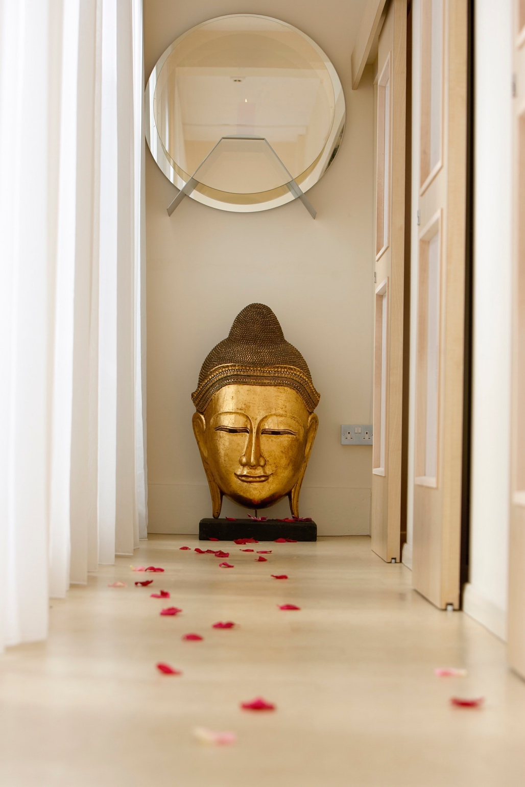 The project is set within the Grade 2 listed Victorian Great Western Arcade in the heart of Birmingham City Centre for an urban retreat day spa which delivers both express treatments as a response to busy city life, and more leisurely relaxation. The design is split over 2 floors with a small retail based ground floor area concealing a larger first floor which features a chill out zone, 4 treatment rooms, a spray tan room, as well as ancillary facilities. The design also features bespoke joinery such as a retail display unit which showcases key products to passers by, and feature lighting such as a lowered ceiling plane with a star-effect lighting arrangement. The whole experience is intended as a mix of eastern philosophies with western tradition, and therefore the interior also addresses this approach. The graphic design of the shopfront was in keeping with the traditions of the arcade whilst internally the graphics are more contemporary.