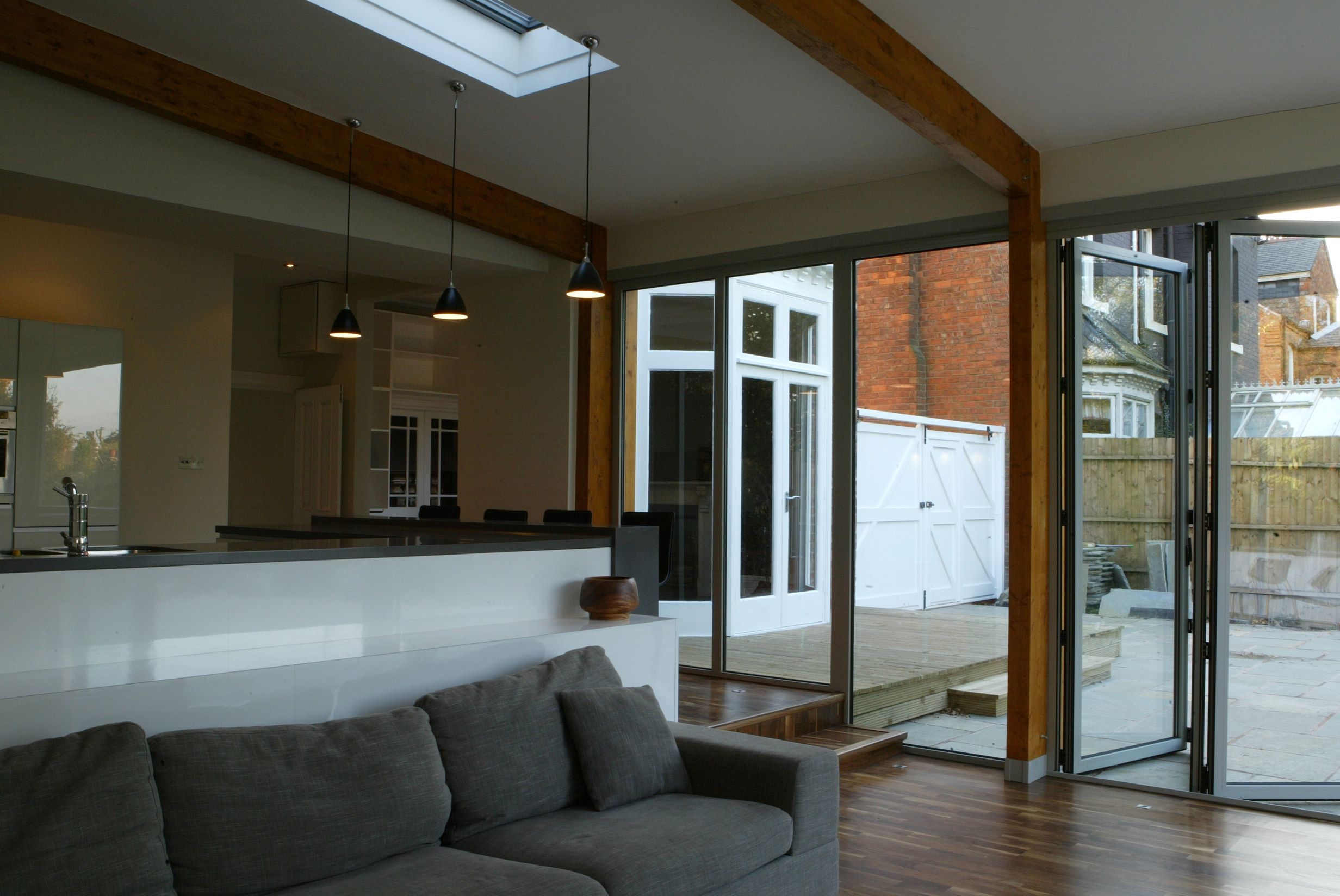 This contemporary extension provides a family space with strong links to the rear garden whilst juxtaposing the Victorian architecture of the house. The extension replaced an uninspiring 1960s brick extension which the clients referred to as "a crime scene"! It is designed to blur the boundaries between the interior spaces of the house and itself, and between the inside and the outside. Folding / sliding doors open up to connect to the external space which is defined by a angled perimeter wall. Timber glulam frames form the principal structure providing a contemporary aesthetic with some resonance to the existing building. The design was featured in "25 Most Beautiful Homes in the World" 2008 edition. Client Testimonial: "Having found our new home, we knew that we needed some visionary help. From the point of deciding on a design to the completion of the build, Kevin and the space* studio team where there to facilitate the smooth, seamless running of all the processes involved, taking the hassle and aggravation away that comes with such processes. They were there from conception to completion, giving guidance, support and expertise. I would without hesitation use the space* studio."