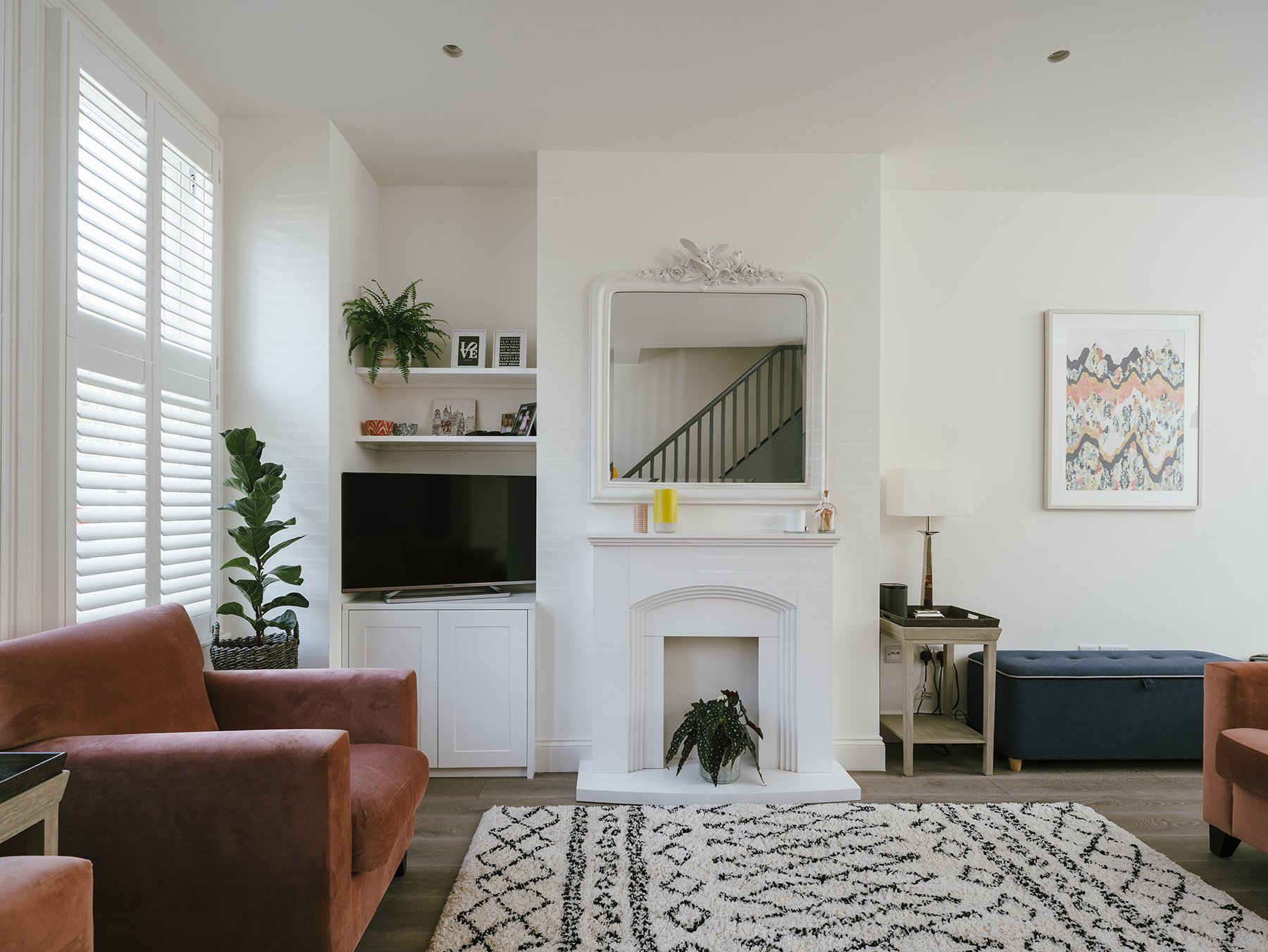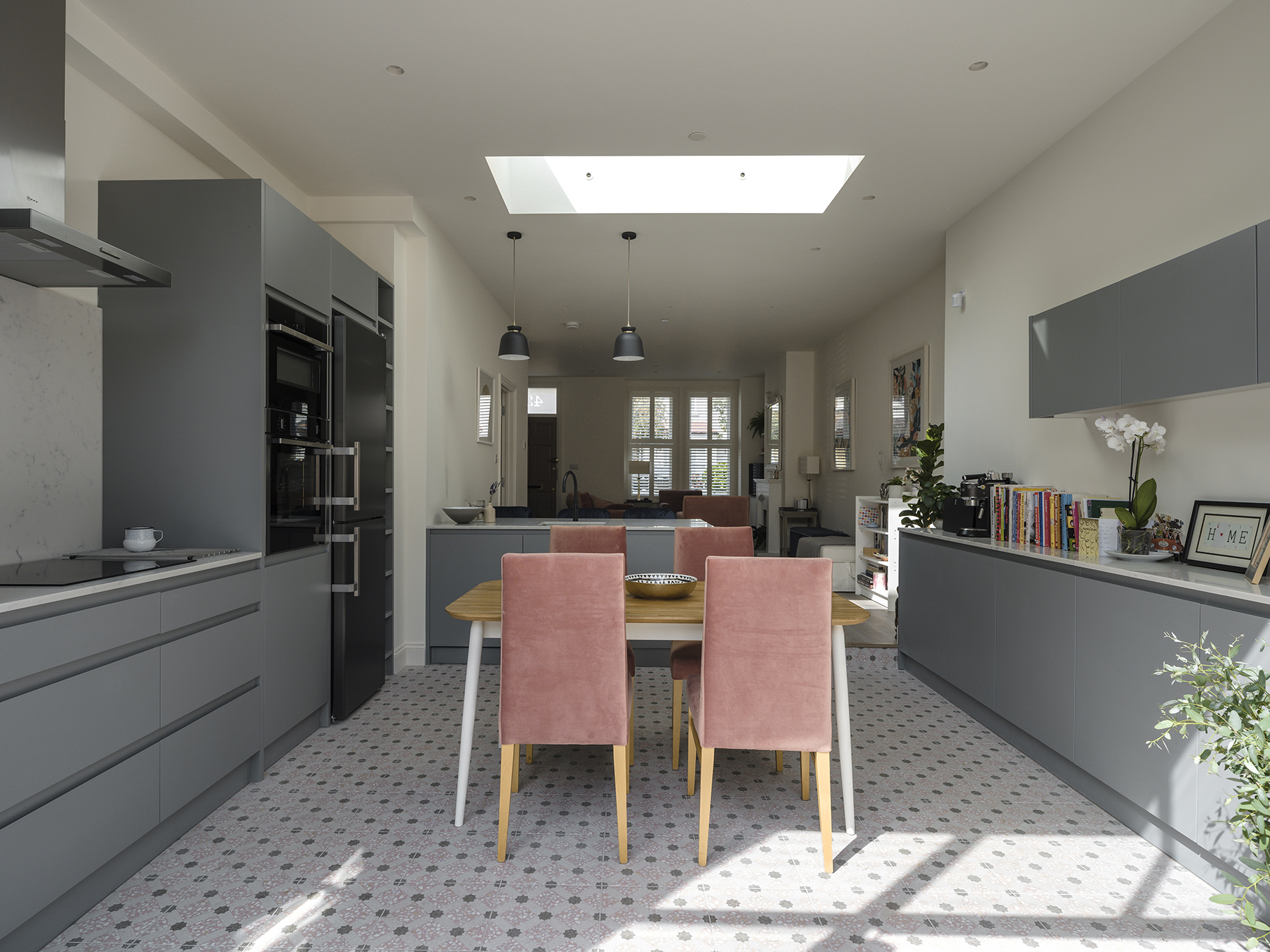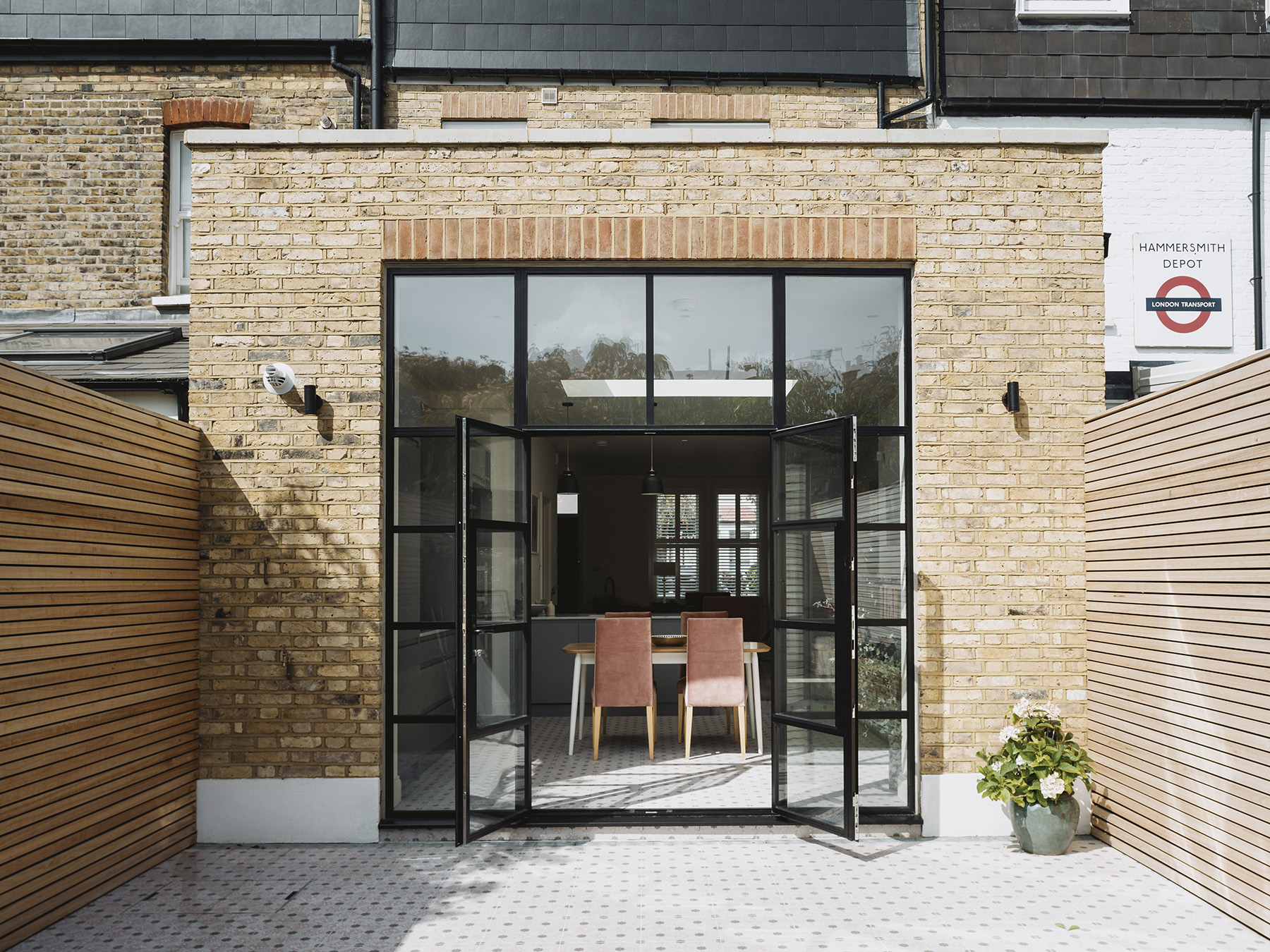 A rewarding design process allowed the clients detailed and passionate vision to be realised. The opening up and extension of this little cottage in Putney allows light and air to flow through the large open plan space at ground level. Permission was gained for a front and rear extension at loft level allowing for a generous bedroom suite. Soft feminine fixtures, fittings and furnishings throughout creates a warm a cosy house which is adored by the client.
