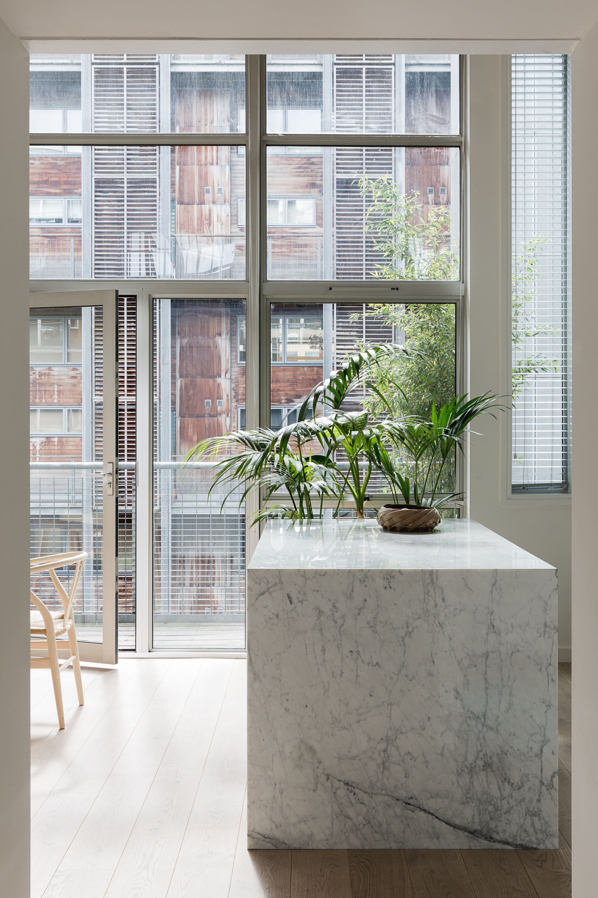 Transit Studio refurbished a split-level modern apartment with a mezzanine and generous natural light, reconfiguring the plan to maximise space and flow. Subtle wall shifts enlarged the bathroom, bedroom, and storage, aligning them with the mezzanine above. This allowed the creation of a dramatic double-height dining area and open-plan kitchen at the heart of the home. The mezzanine living room overlooks the space, enhancing the sense of openness and connection. Clean lines, carefully considered proportions, and the interplay of light and volume transform the apartment into a refined, functional, and visually striking contemporary residence tailored to modern urban living.