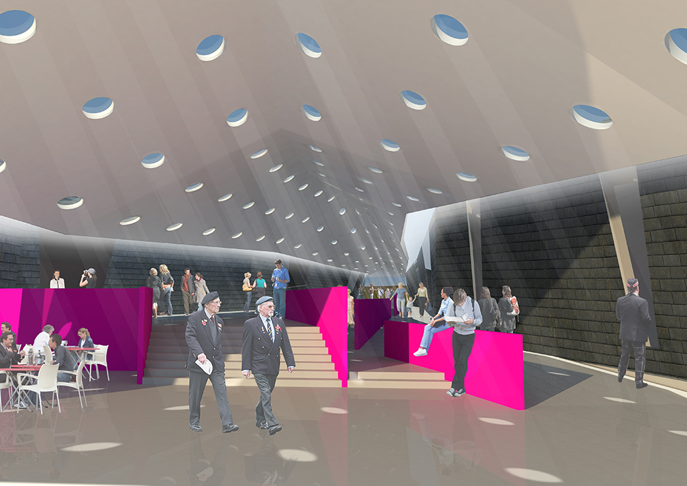 A museum and community centre located on the shore of Loch Ewe, Scotland. Twelve architects has been shortlisted to design The Aultbea Regeneration Project for the Aultbea Regeneration Company and the Russian Arctic Convoy Museum. The project consists of a new community centre that will accommodate a variety of sporting and club activities, market days, seasonal events, council meetings and celebratory functions. It will also accommodate a museum and education & research centre to commemorate the World War II Arctic Convoys and the sacrifices made and the bravery shown to those who served and those in the local communities around Loch Ewe who supported them. The project brief is to create a landmark for Aultbea and the Loch that is affordable, practical and fully accessible. The project will be environmentally sustainable and provide social and economic benefits to the local community. Our design for the identity of this unique project is inspired by the iconic silhouettes of the Arctic Convoy, Loch Ewe landscape and the local community. We have abstracted these special silhouettes to create a contextual and unique external form and an inspiring and functional internal environment. A central atrium links the community centre and museum together and provides additional social and temporary exhibition space. Set within the roof of the atrium is an orthogonal grid of light tubes. As the sun passes across the site a grid of light is projected onto the atrium floor that moves and is reminiscent of the formation and zigzag journeys made by the Arctic Convoy. The Aultbea Regeneration Project provides a valuable and important opportunity to create a building symbolic of commemorating the bravery, camaraderie and selflessness of the past whilst simultaneously representing the spirit embedded in a community for future generations to come.