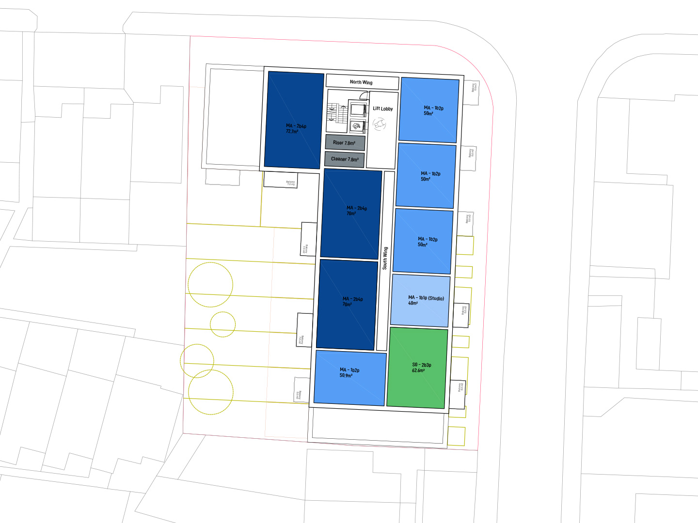We worked with the London Borough of Waltham Forest and their development company Sixy Bricks in the pre-construction stages of the project to develop a new vision for a former youth services centre in Leytonstone, east London with new mixed-tenure housing. The proposal is part of the regeneration of a 1970s social housing development, completing the urban block with a new landmark building. The proposal was presented in a pre-application report informing a site development business case.