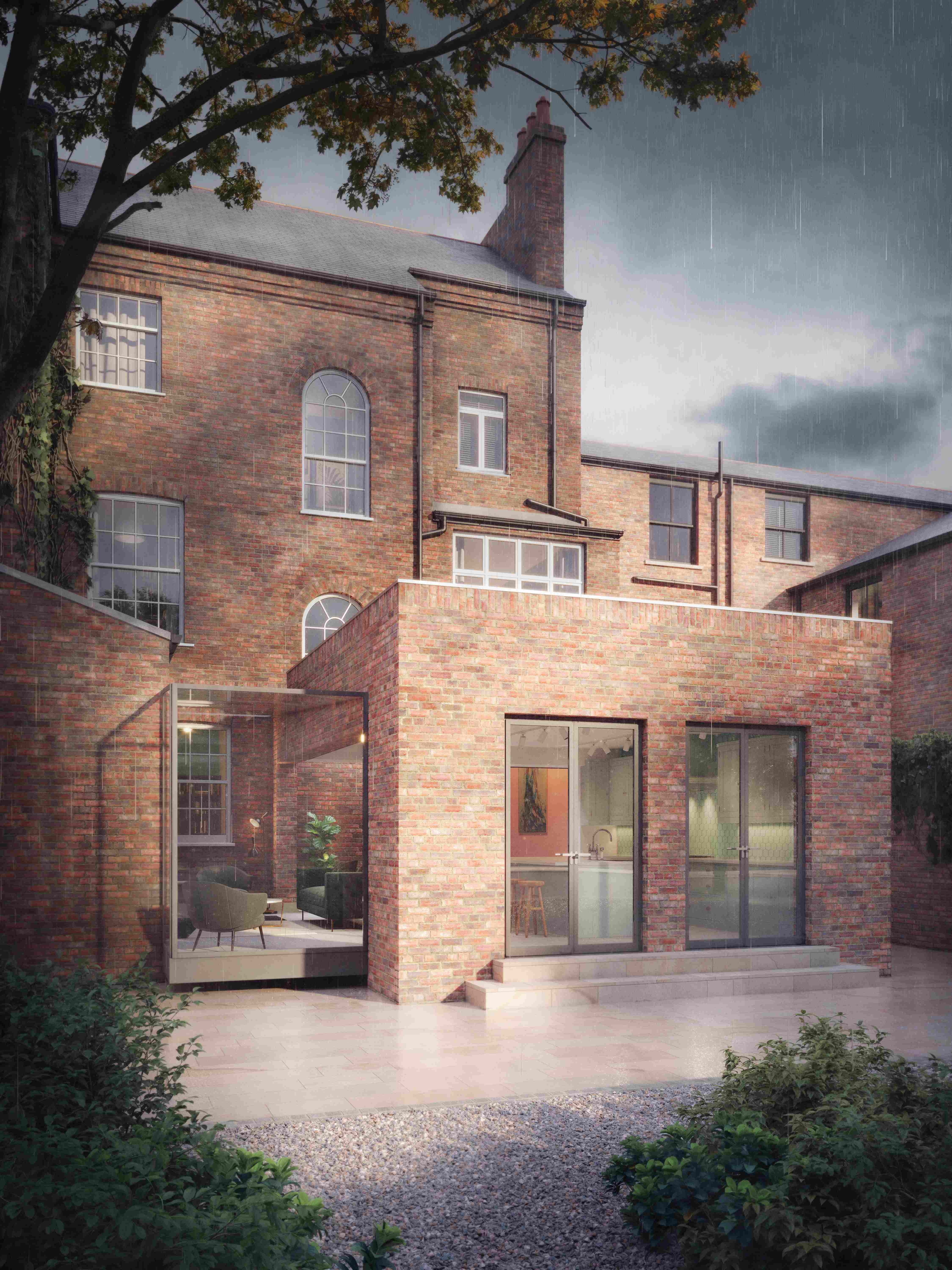 A replacement extension to a Grade II* listed Georgian dwelling in the heart of York, within a Conservation Area. The design carefully consideres the existing context, including the listed dwelling and historic Bar Walls of York (Ancient Scheduled Monument) that form the property boundary to provide a modest and contemporary extension to the rear Ground Floor. The design considers a replacement 'box' in form, removing a poorly considered 1980's rear extension. The new brick volume lightly touches the existing property through glazed links, providing high levels of natural light into the extension and existing floorplate.