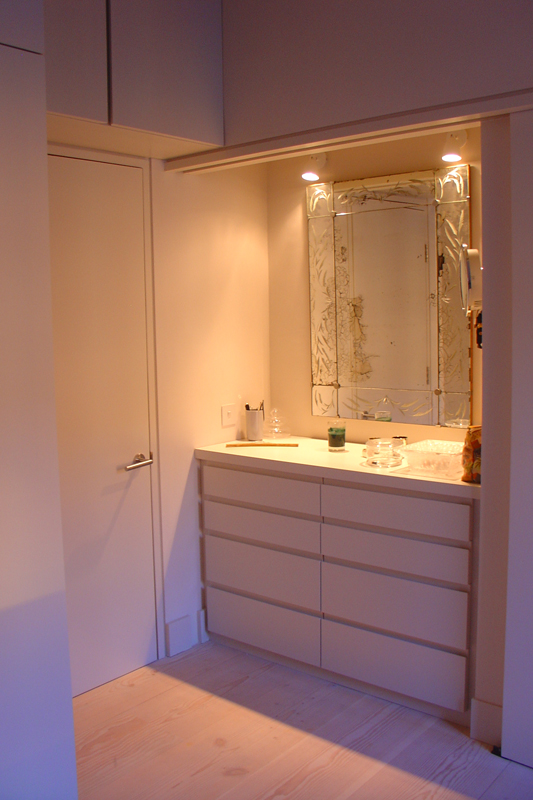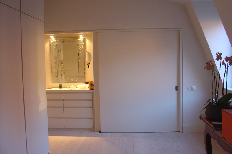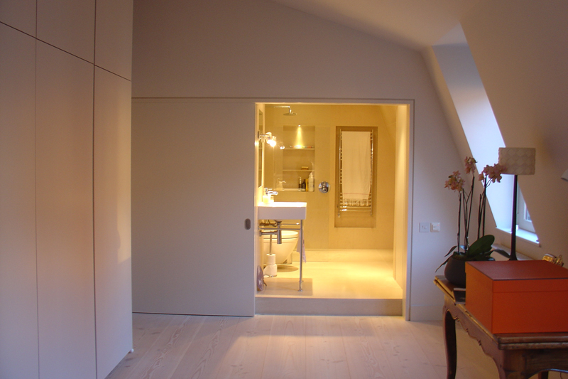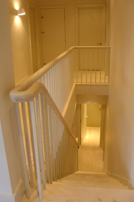 Complete refurbishment of two storey flat in Chelsea, including design and installation of new stair, kitchen, bathrooms and storage fittings.