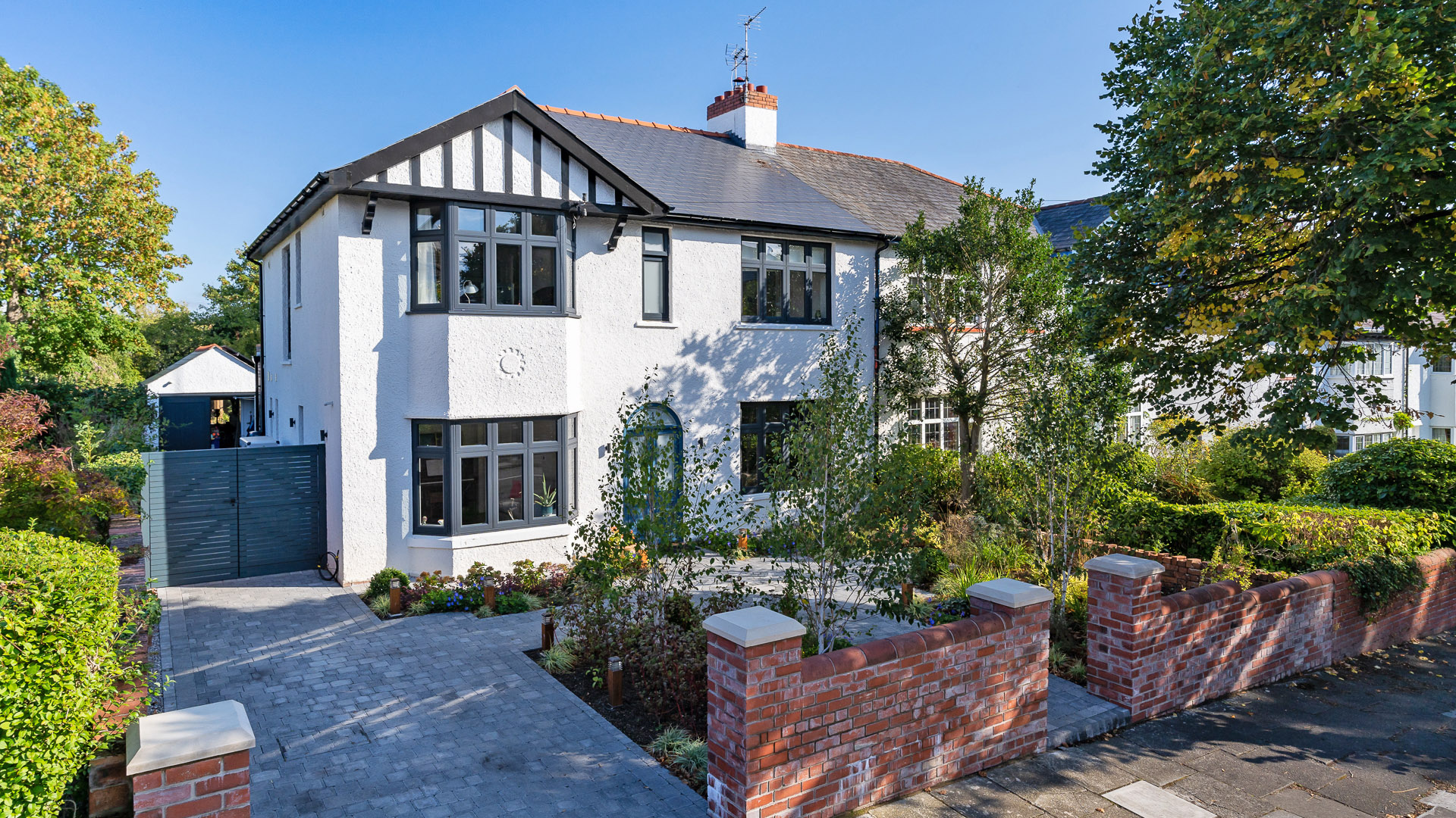 Deep retrofit, full house remodel and ground floor extension of a 1920's semi detached property. The clients were interested in using renewable technologies to power their home. We opted for substantial improvements to the building fabric to increase the building’s performance and combined this with photovoltaics and an air source heat pump to sustainably power and heat this home. By lowering this home’s CO2 emissions from 10.92 t/y to just 1.73 t/year, we have achieved an energy reduction of 84%. In addition to the improvements to the building fabric, the property has been extended and remodeled. The rear wall of the house has been demolished and a 1.5m deep extension has been added across the rear of the property to provide a new kitchen dining space with views onto the garden. The extension is built in Staffordshire blue bricks for their durability and as a nod to the blue fireplaces discovered in the property. The blue theme is carried on throughout with colour accents to the family room chimney breast, the kitchen cabinetry, the vanity units and the feature tiles to the shower room. A fabric first approach included improved insulation levels to the roof, floors and external walls along with air tightness of the building and windows. The property suffered from compaction of fill which required the digging out and the replacement of the ground floor slab. This enabled us to insulate the entirety of the ground floor and to install an underfloor heating system throughout. The materials have been chosen to be durable and easy to clean and maintain. The clients were keen to future proof their home as they are both retired. Adaptability has been built in with a walk in ground floor shower room, sliding doors with generous clear widths for future wheelchair access and a lift and slide gear to the large external doors which ensures they glide effortlessly.