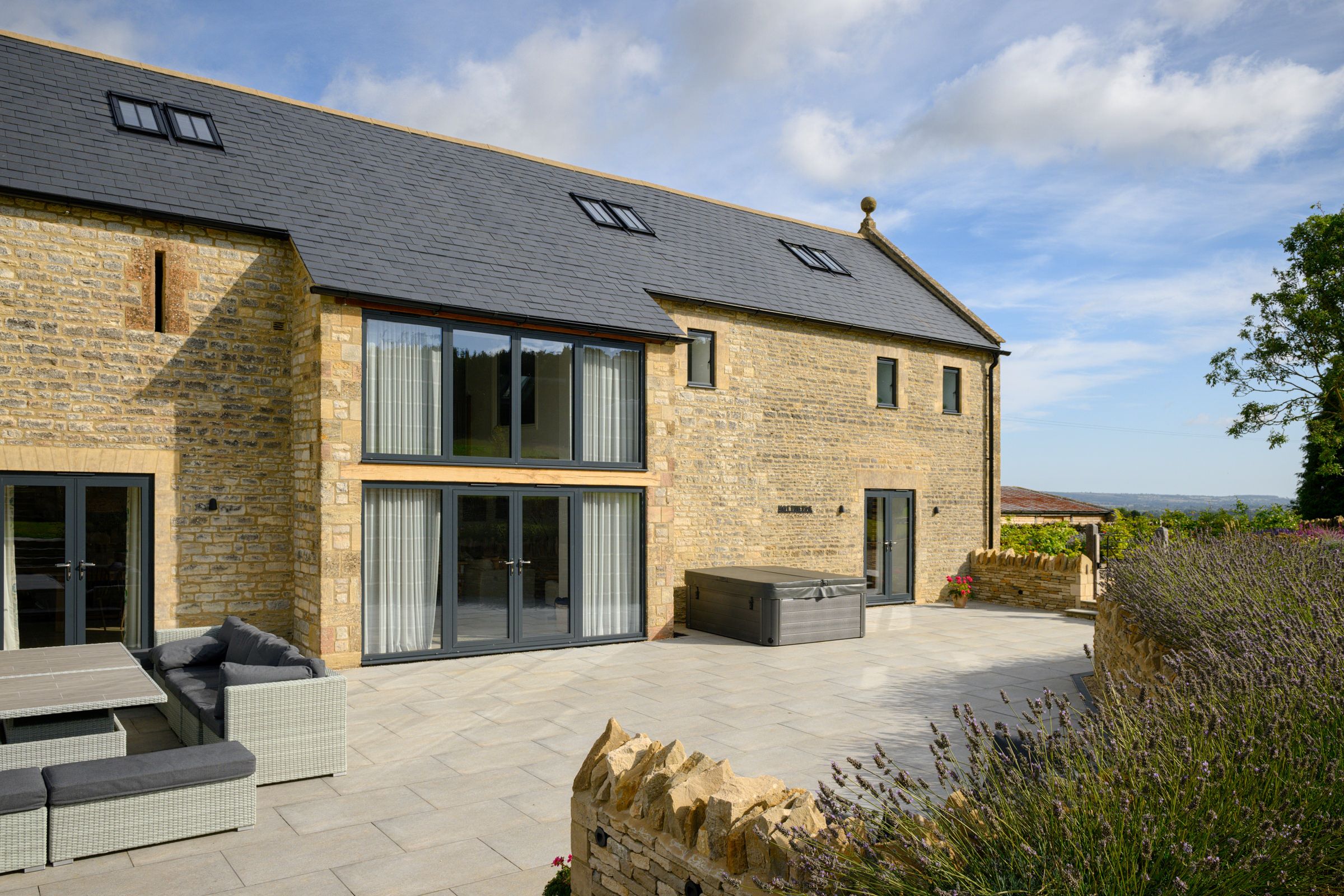Standing as a centre piece within a private hamlet lies Firefly Barn, a quintessential Cotswold Barn. This beautiful stone barn is close to Burford, on the side of a gentle north facing slope overlooking Shipton-under-Wychwood. Like many Cotswold stone barns, the building stood almost derelict for many decades until our client decided to fulfil a lifelong ambition and develop it. William Green Architects developed a concept design scheme for the barn to become a high-end holiday let, catering for the discerning tourist looking for an authentic, immersive Cotswold experience. The designs were developed into a Planning package and successfully guided through planning, ably assisted by Bourne Rural Planning Consultancy. With careful design interventions William Green Architects were able to create a 6 double bedroom proposal that retained and celebrated the central triple height classic element of the barn. This element is retained to fully express the feeling of volume space that is inherent to barns. The dramatic experience is embellished by expressing the natural stone walls with the stairs and landing designed to bridge the voluminous space. The accommodation extends to an open plan living, dining space that closely connects to the locally hand-crafted kitchen and boot room. A bar, pool room, and cinema further complete the internal offering. Externally there are carefully designed spaces for an external kitchen/barbecue area along with associated seating, with sweeping views across the Cotswolds where one can pass the time picking out the villages, farms, and stars. The beautifully built result was carefully carried out by the estate builder and onsite joiner who collaborated to deliver the client’s vision. Designed by William Green Architects and beautifully finished by Lauren Gilberthorpe Interiors. A great collaboration, for hire.