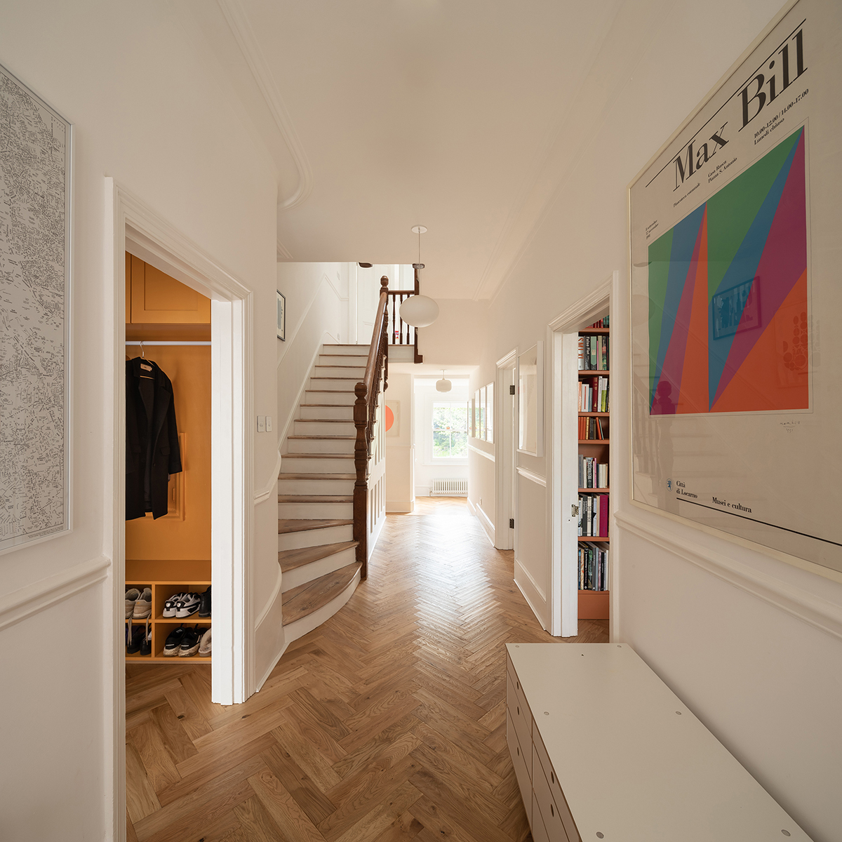 Bushy Park House is a project that entailed the full restoration and renovation of a double fronted detached Victorian property near to Bushy Park in South West London. Through the use of specialist contractors we carried out the careful restoration of historic lime plaster, the delicate structural repair of brick and timber elements of the house, a full lime mortar repointing of the front elevation along with a bright and colourful internal renovation through use of joinery and select opening up works.